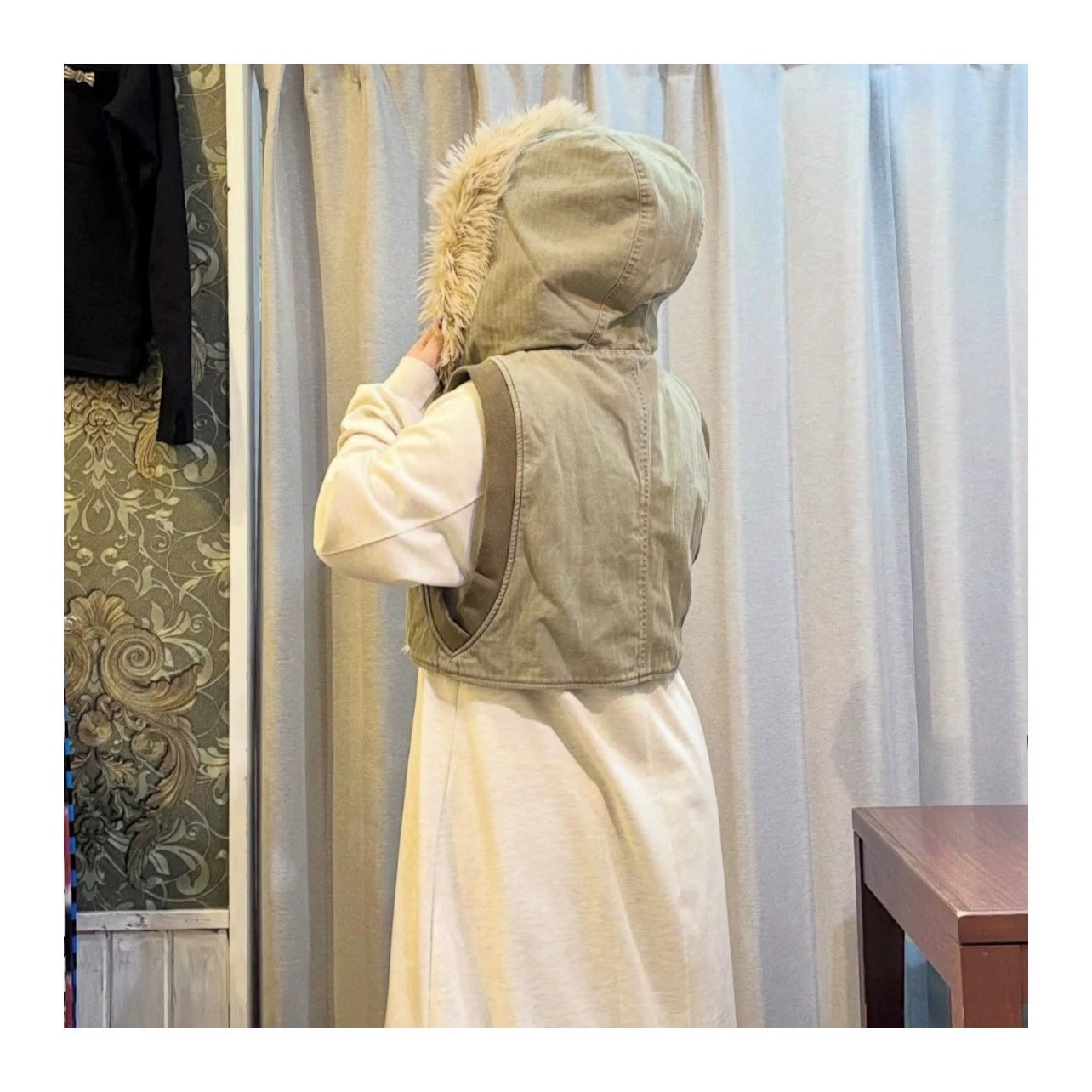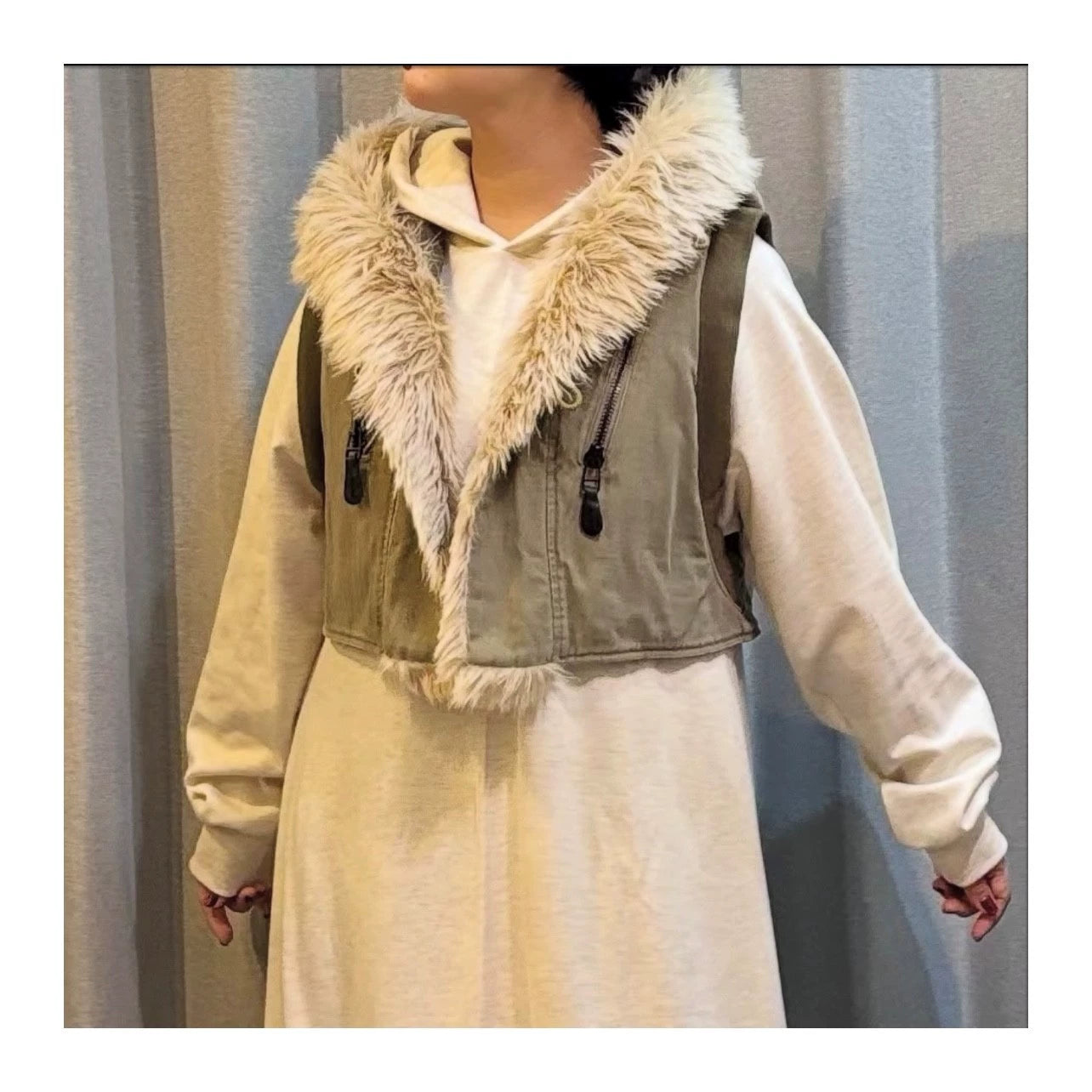 Kapital 25AW Japanese Warm Vest - Fur Collar Herringbone Hooded Casual Outerwear