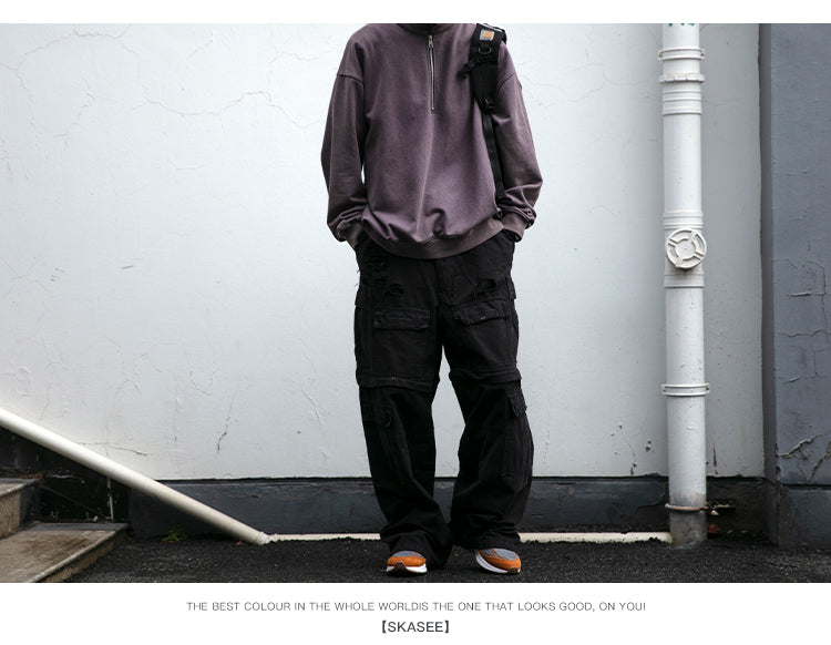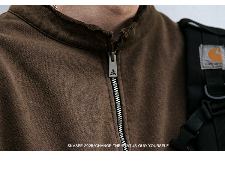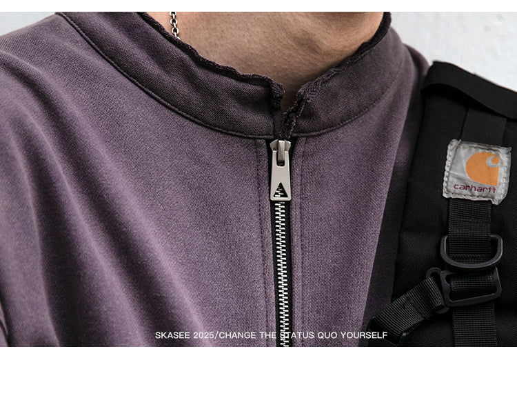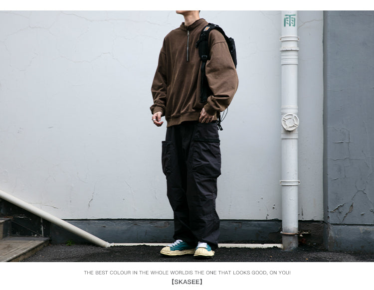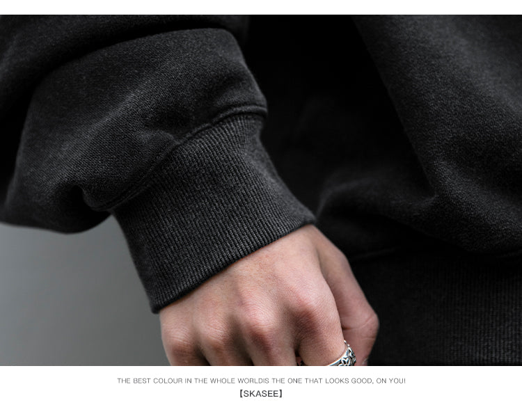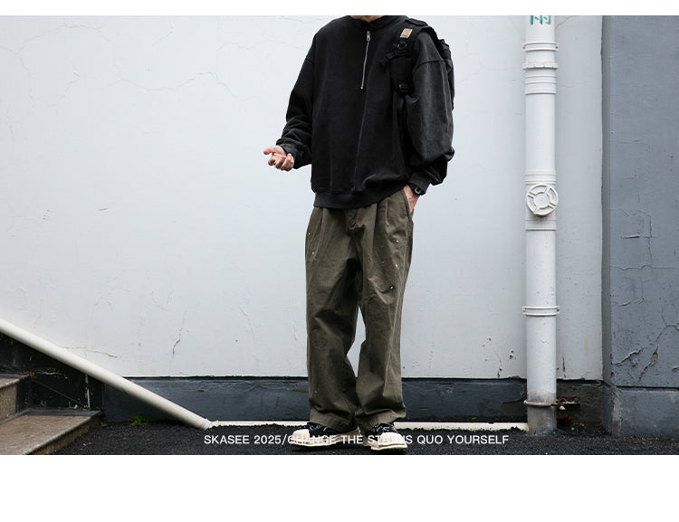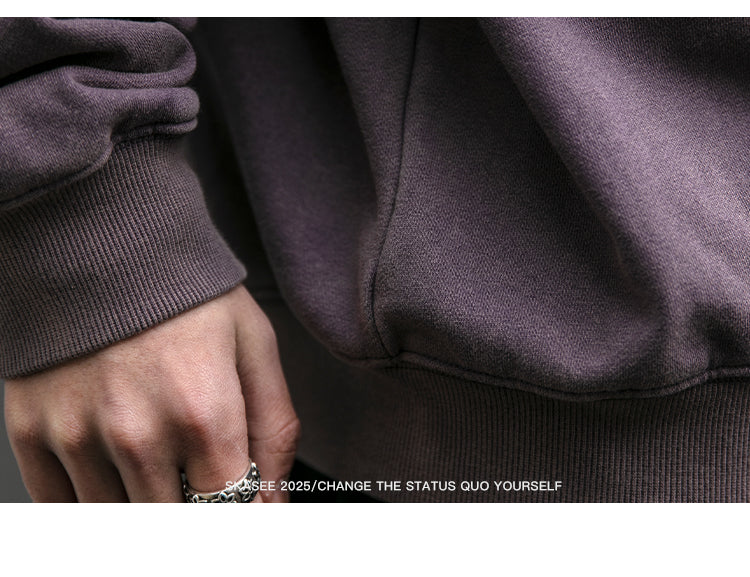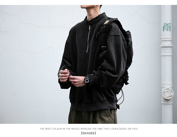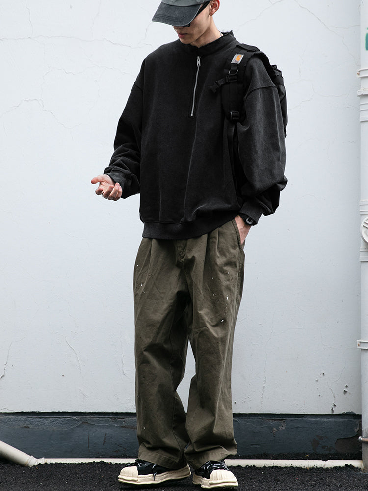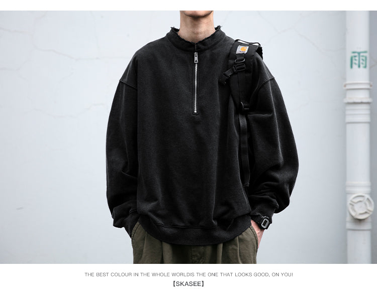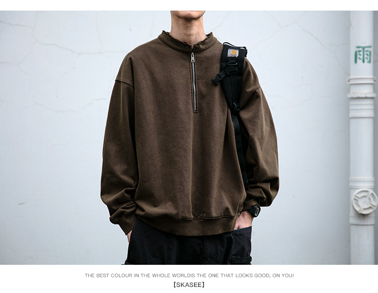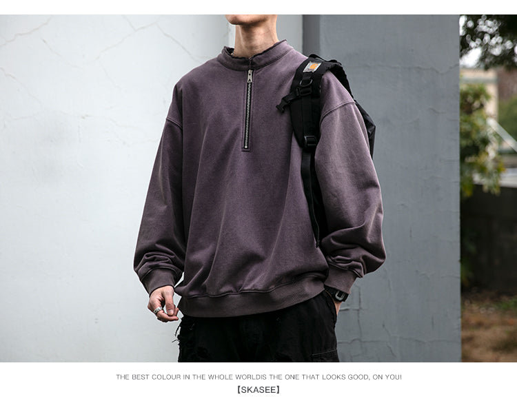 Unisex 465g Washed Vintage Sweatshirt - Boxy Half-Zip Snowflake Knit Pullover