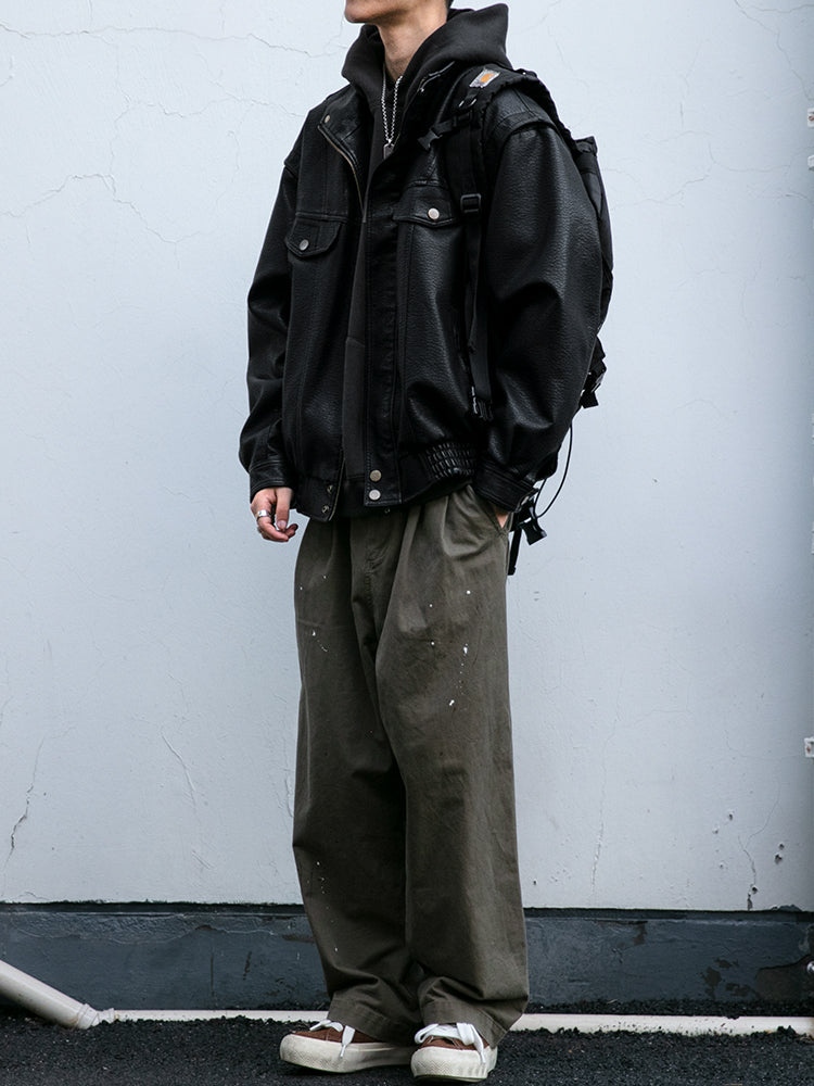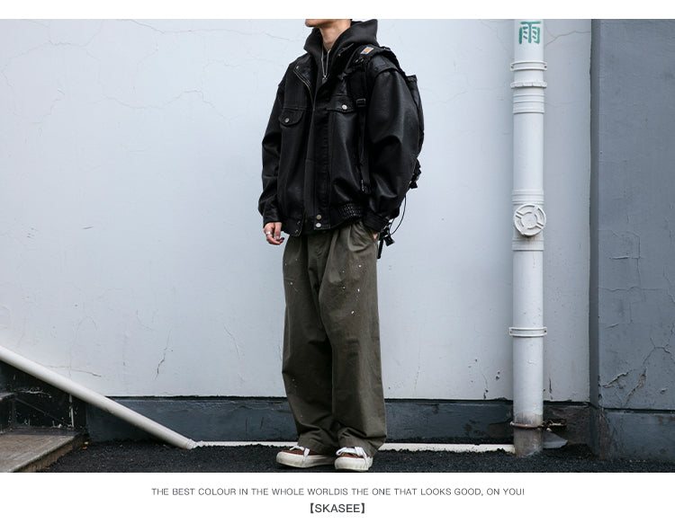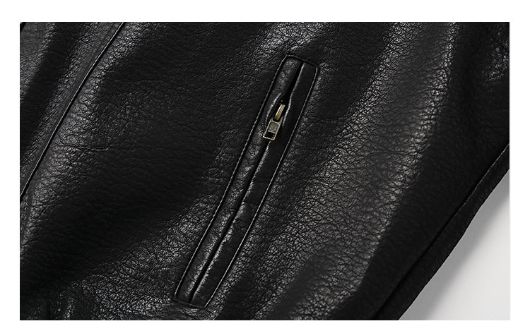Men's American Retro Leather Jacket - Lychee Grain Stand Collar Motorcycle Coat