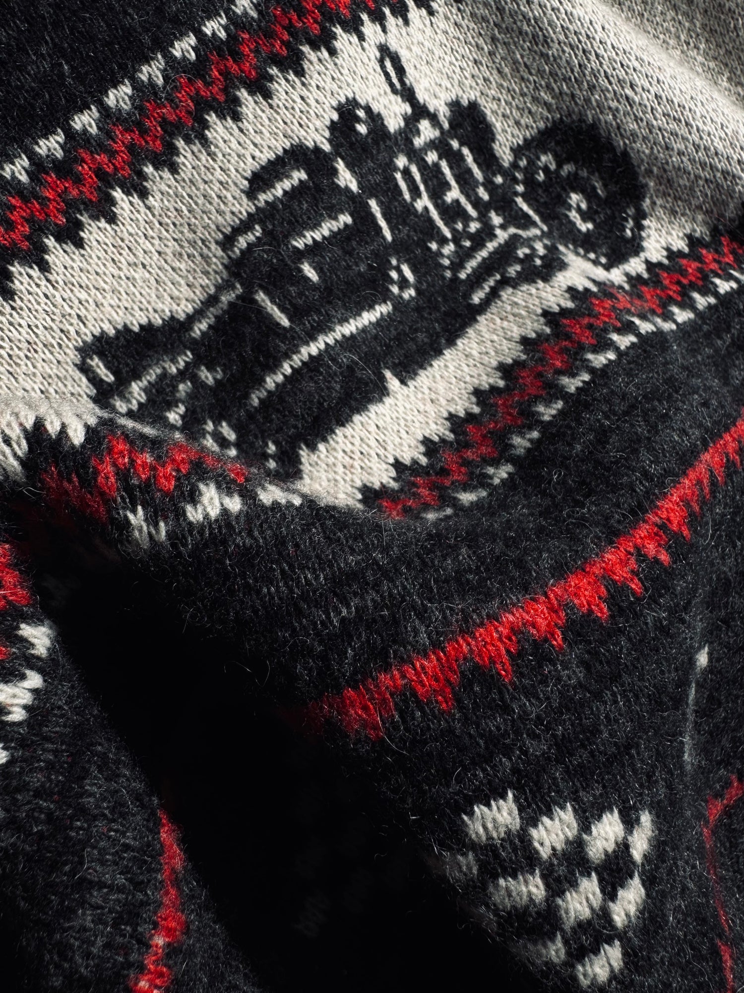 RRL Motorcycle Club Jacquard Cardigan – Heavy Retro Green Knit (Unisex)