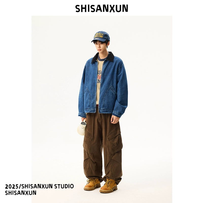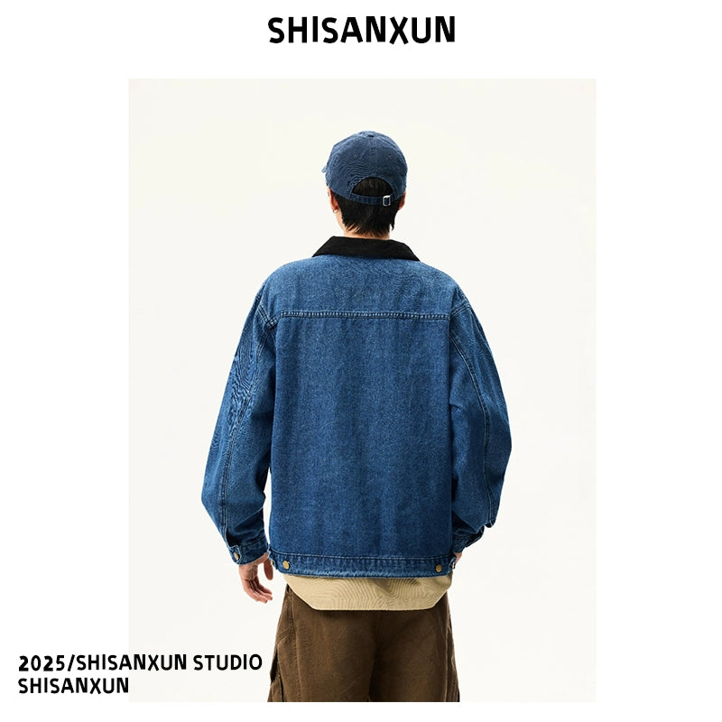 Vintage Washed Distressed Blue Short Lapel Jacket – Workwear Style (Unisex)