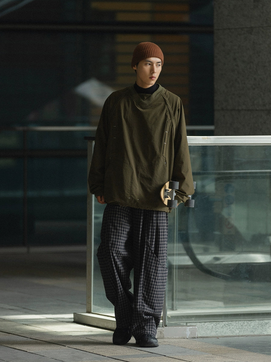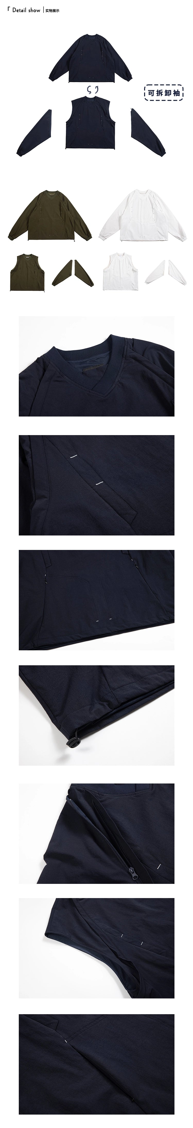 Army Green Heavy Outdoor Hooded Sweatshirt – Removable Sleeves V-Neck Nylon (Unisex)