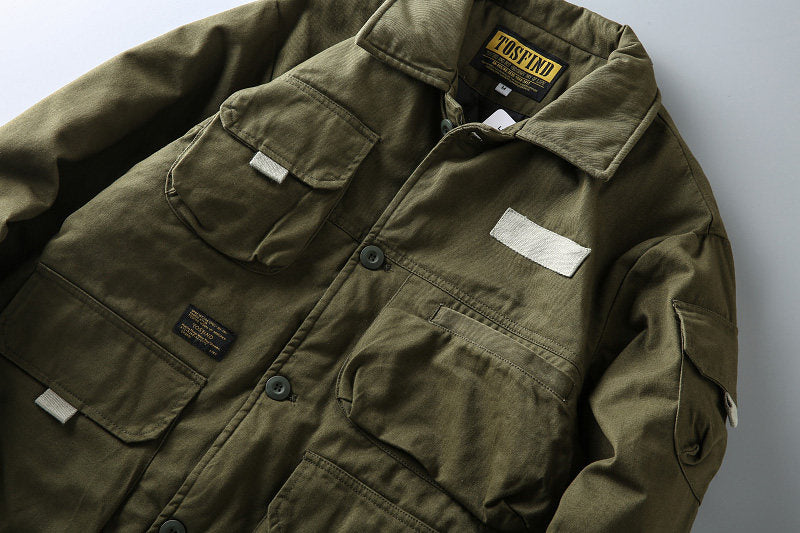 Japanese Retro Washed Multi-Pocket Military Workwear Jacket - Thickened Cotton Coat