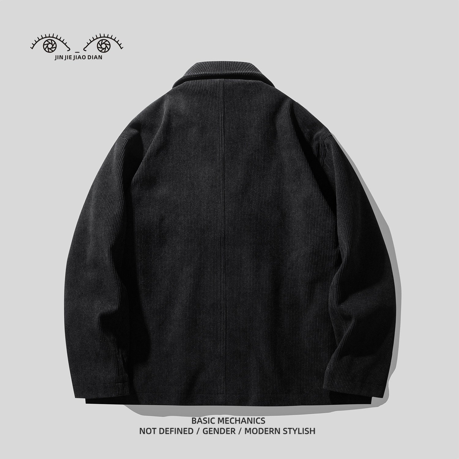 This Autumn 2025 blazer by Jinjin Black Spot combines Belgium's high-end fashion sensibility with Japanese minimalist aesthetics. The notched lapel and double-breasted single button closure create sophisticated structure, while the loose fit and multi-pocket design add contemporary functionality. The hidden zipper and crew neck details reflect modern tailoring techniques. Perfect for those who appreciate European elegance with Asian-inspired simplicity.
