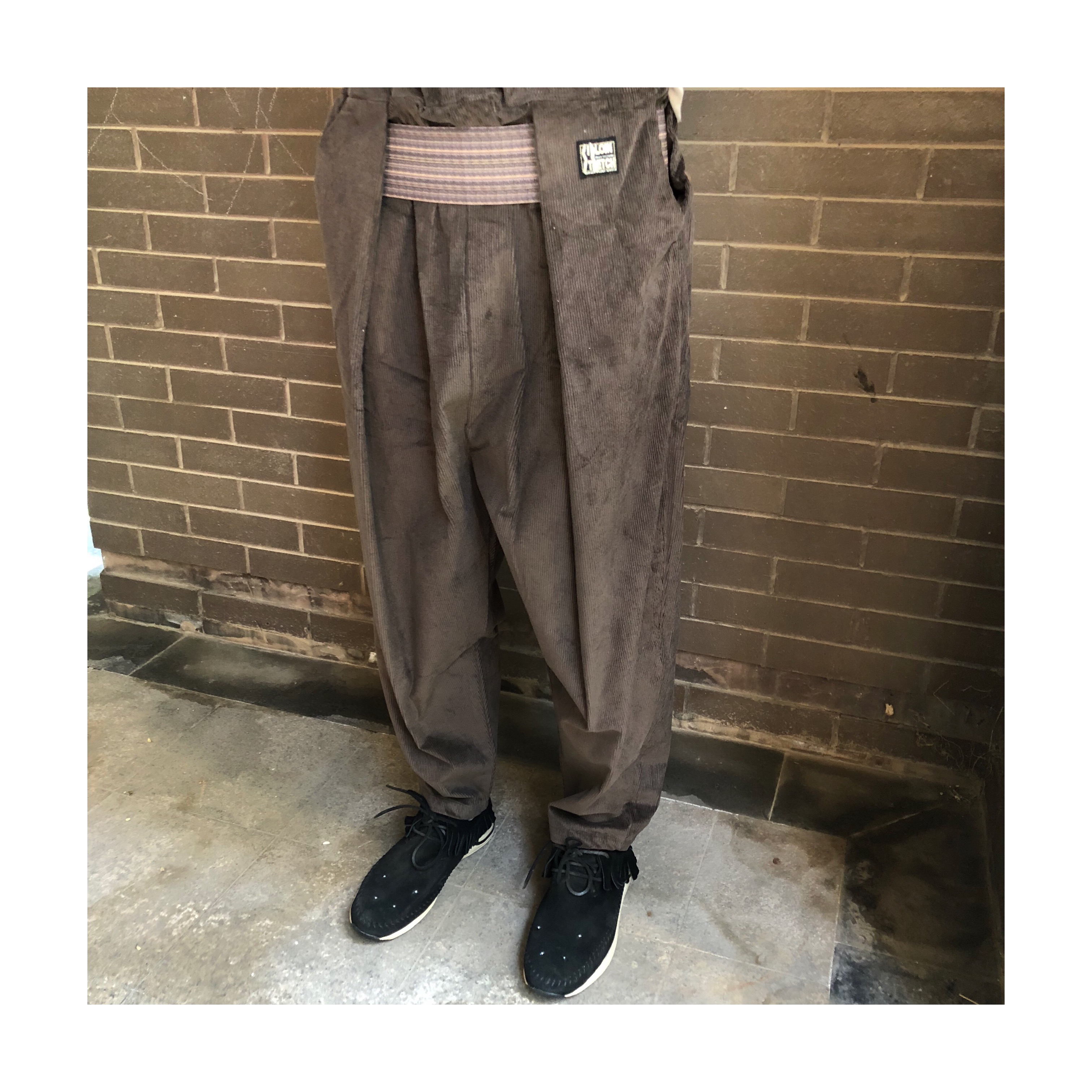 Corduroy loose fit Elastic waistband Casual tapered cargo trousers