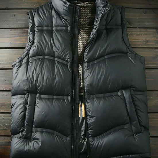 Men's 90% White Duck Down Stand Collar Vest - Autumn Winter Fully Glued High-Fluffiness Warm Jacket