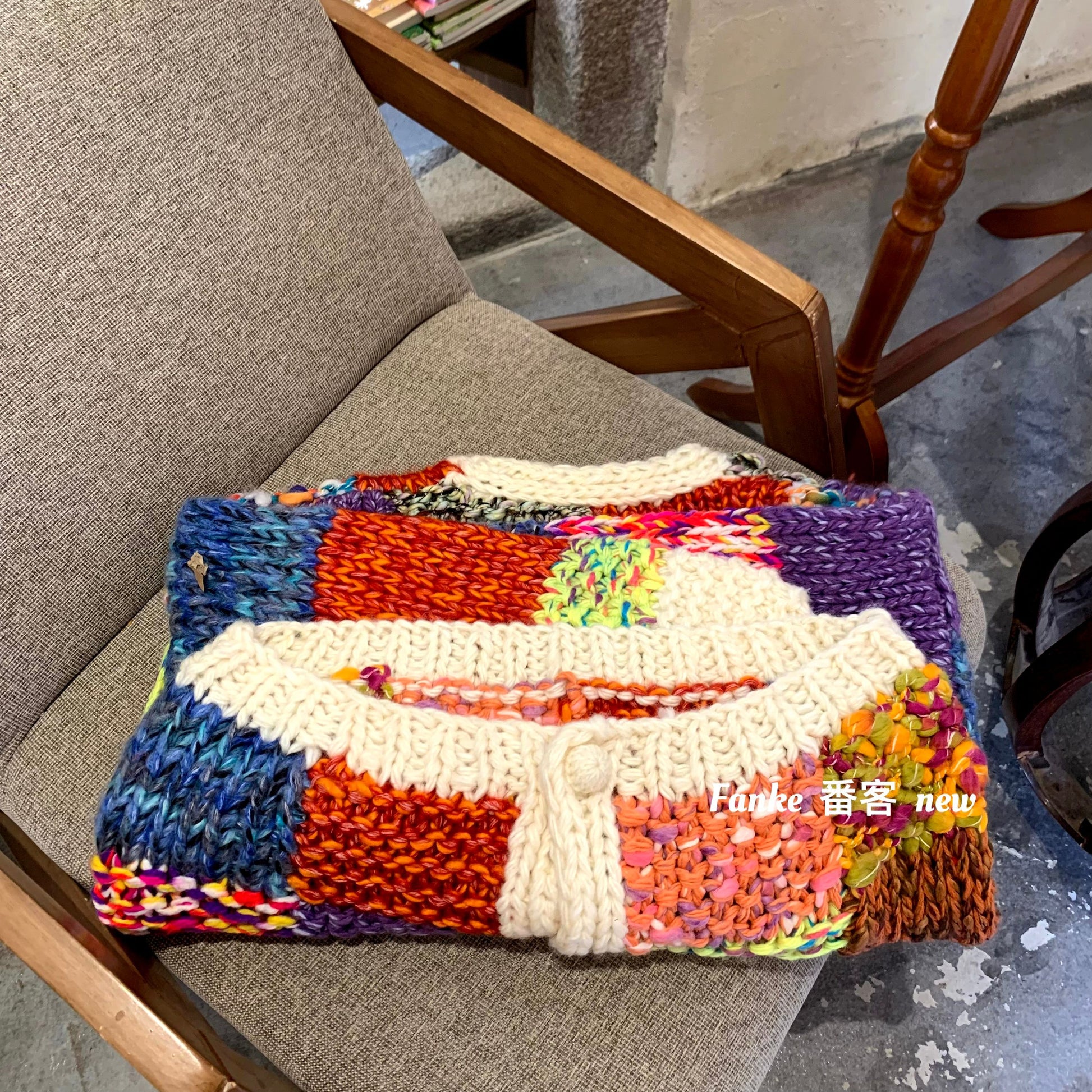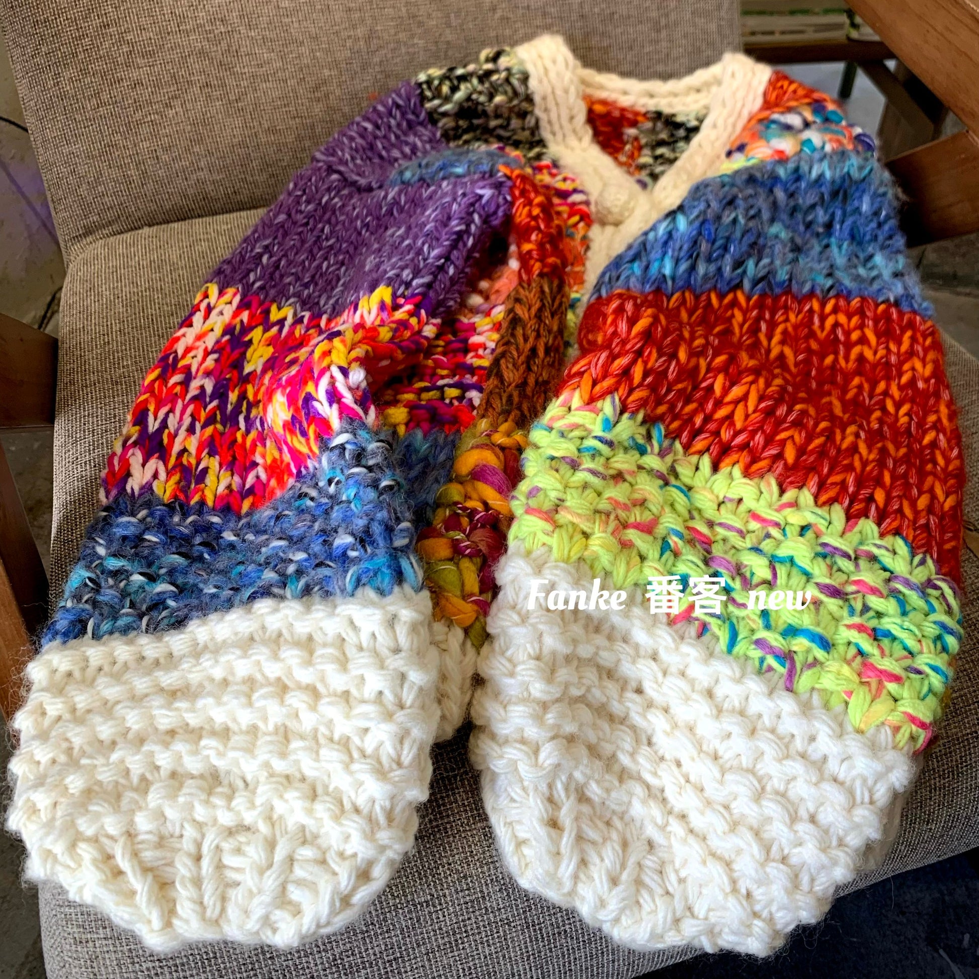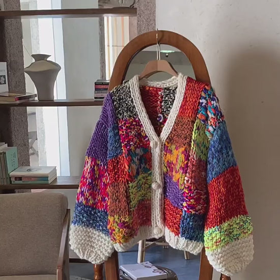 Women's 2025 Autumn Winter Heavy Craft Cardigan - Handmade Thick-Knit Colorful Plaid Knitted Sweater Coat