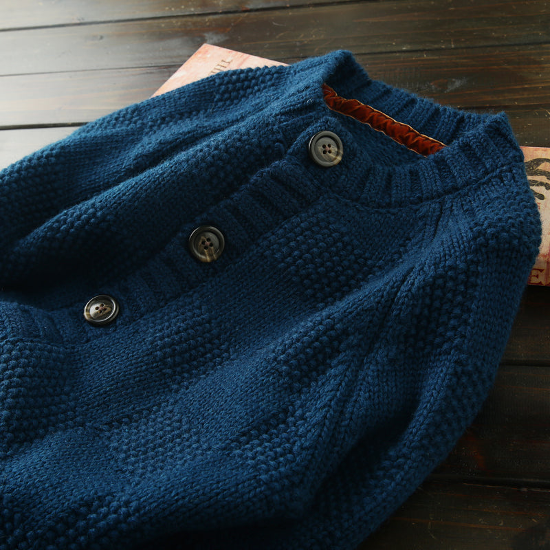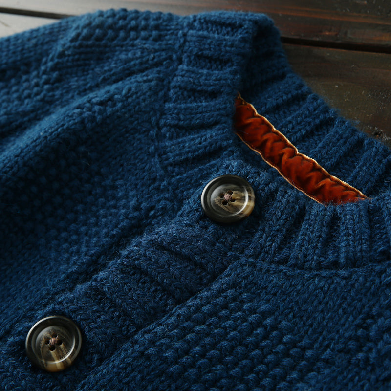 Men's High-End Italian Order Heavyweight Wool Cardigan - Autumn Winter Thickened Round Neck Knitted Sweater Jacket