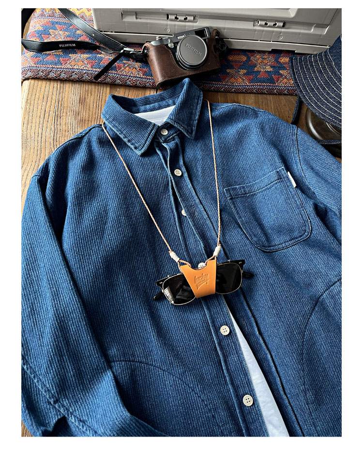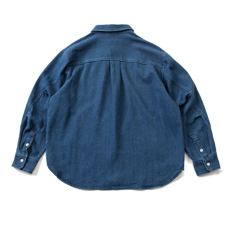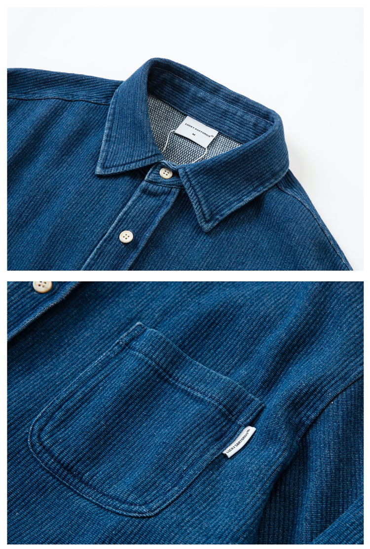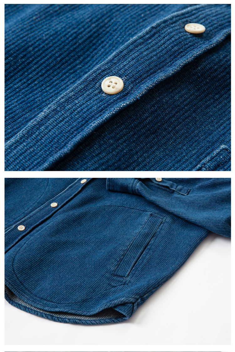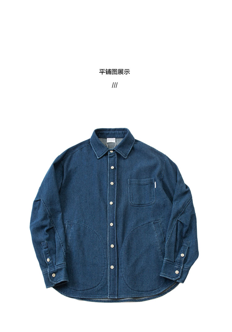 Japanese autumn and winter men's indigo textured fabric denim shirt