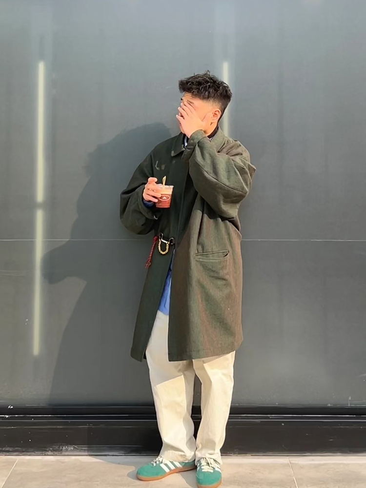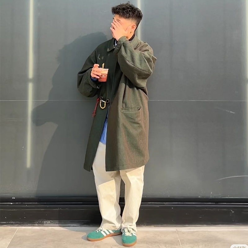 Japanese retro lapel loose-fitting long-fit trench coat jacket