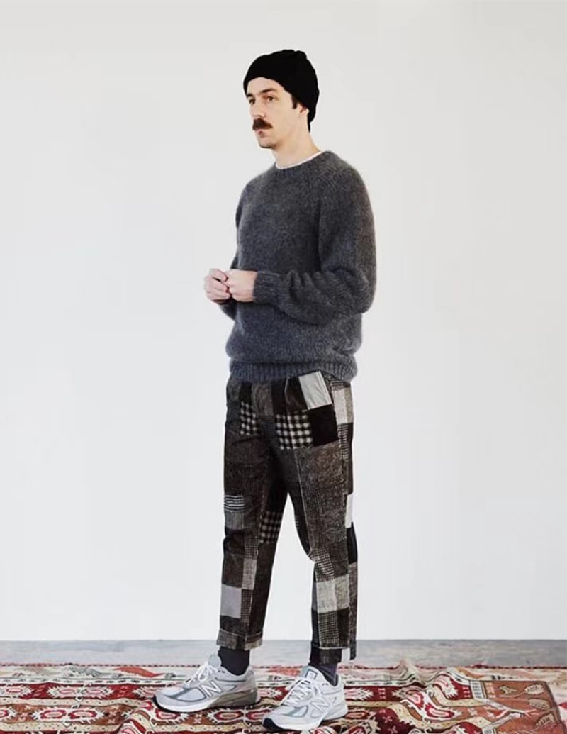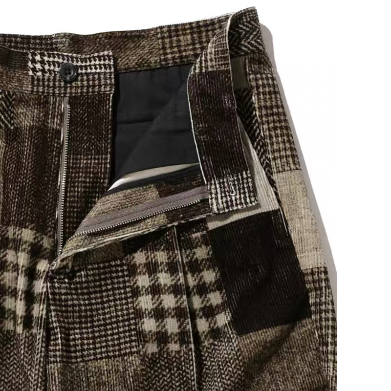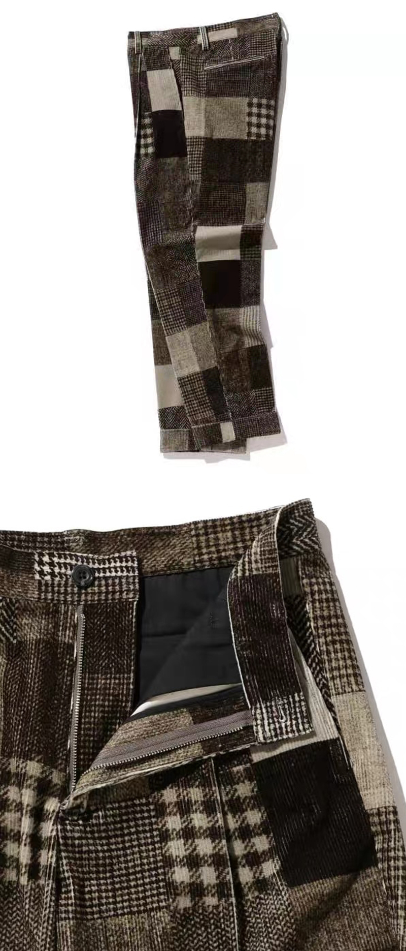 Japanese retro popular corduroy plaid stitching tapered men's and women's casual trousers
