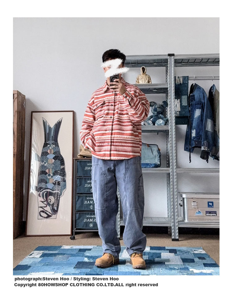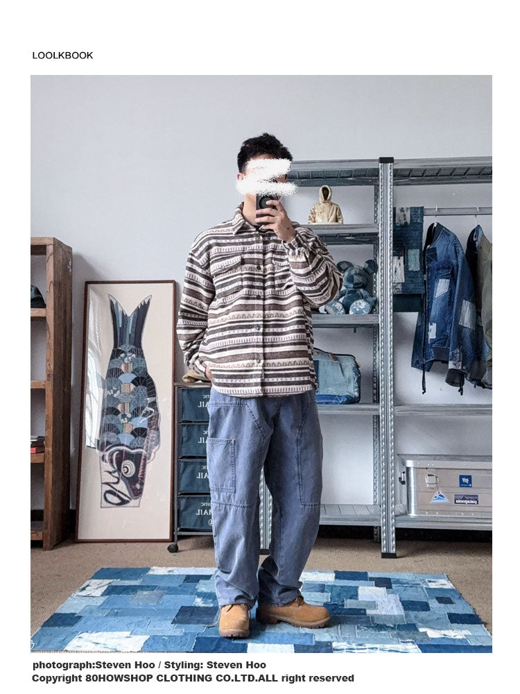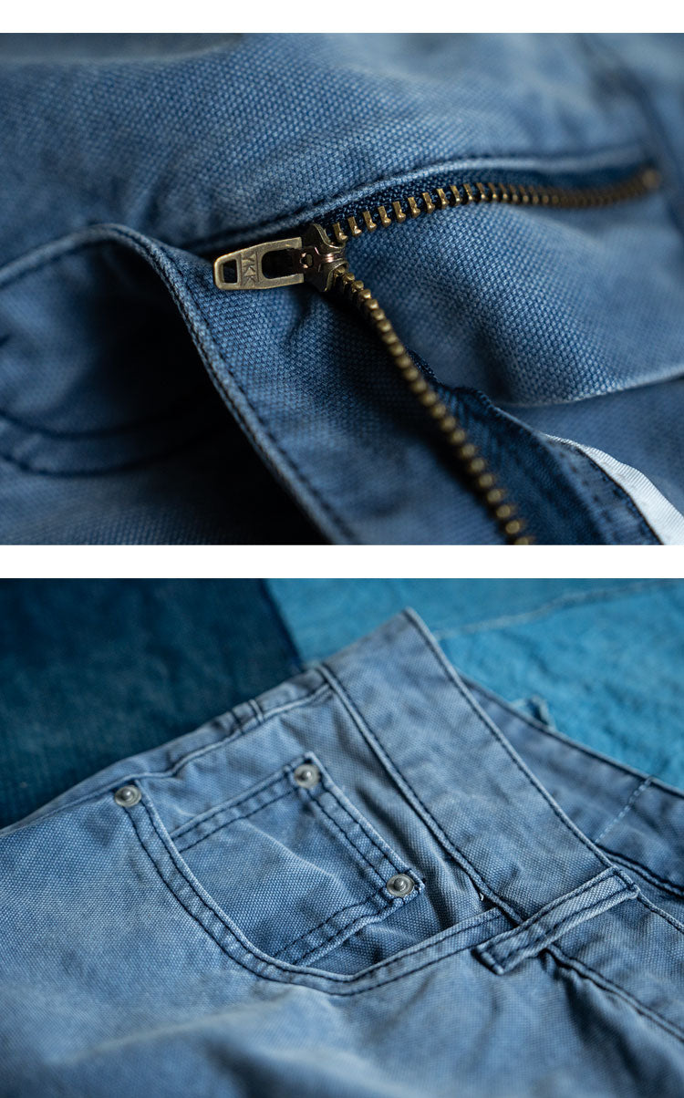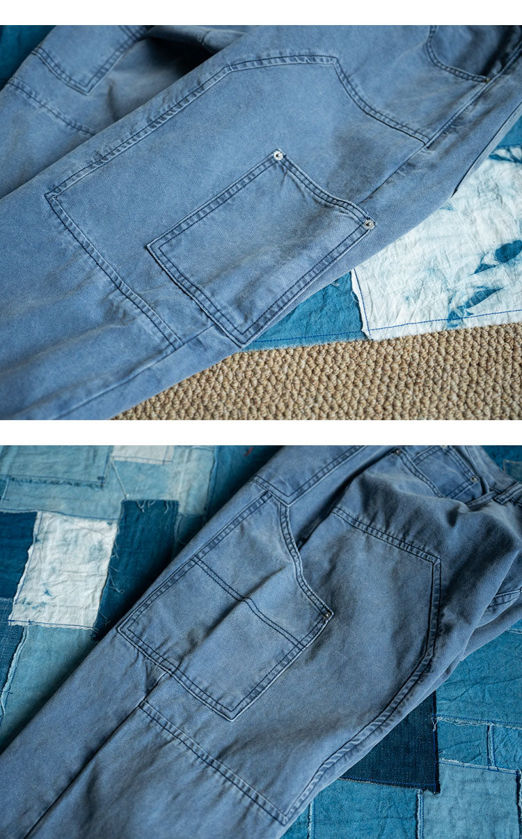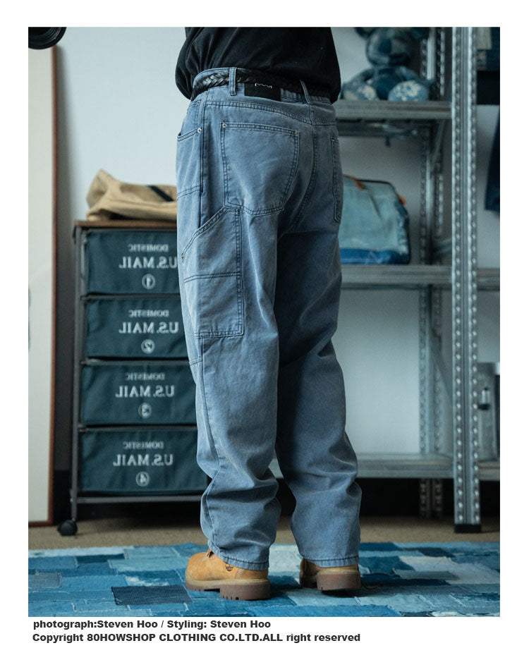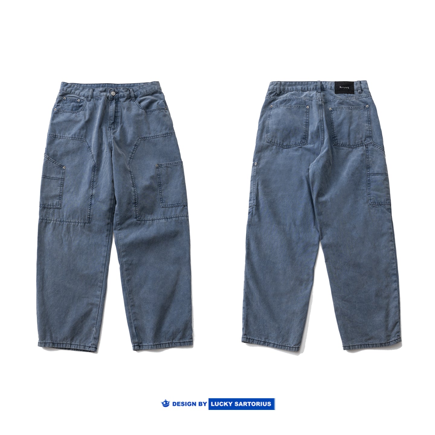 Japanese Retro Washed Beaded Canvas Work Pants – Loose Wide-Leg Unisex