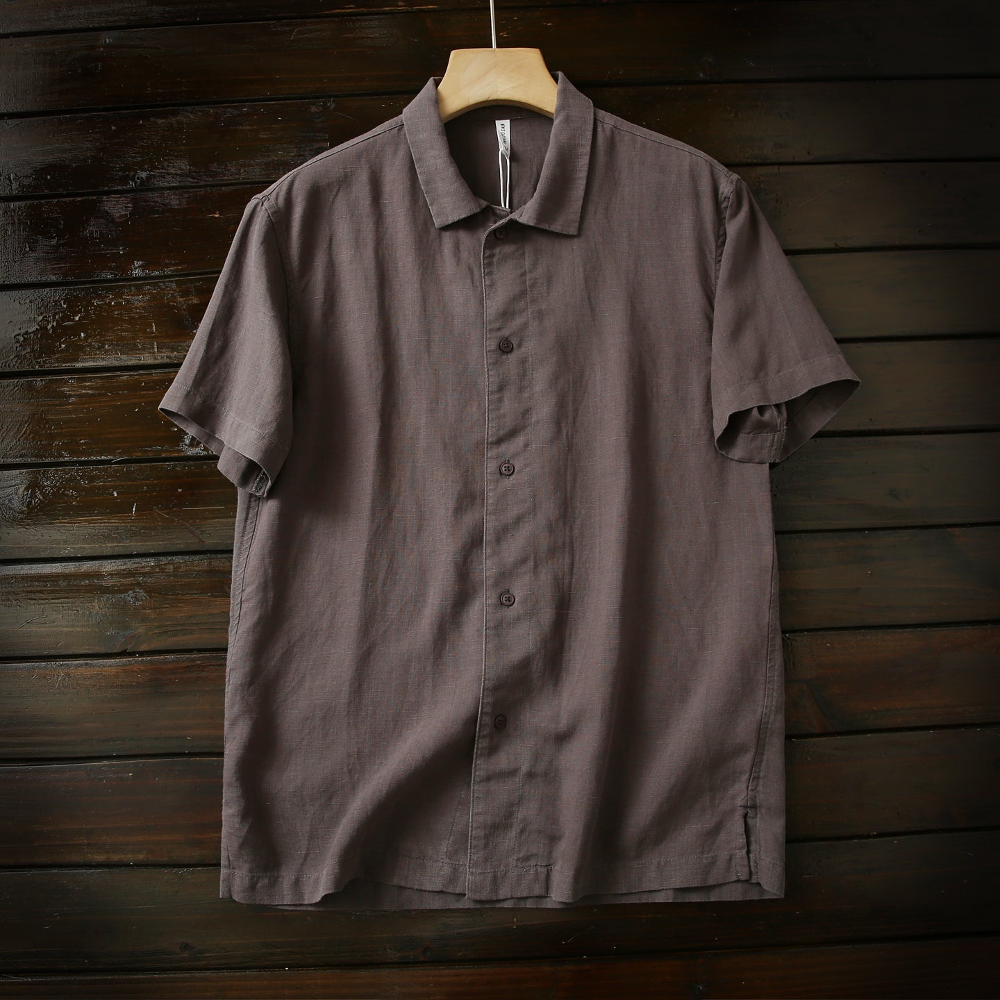 Cool Antibacterial Linen/Lyocell Men's Summer Turn-down Collar Loose Casual Short Sleeve Shirt Top