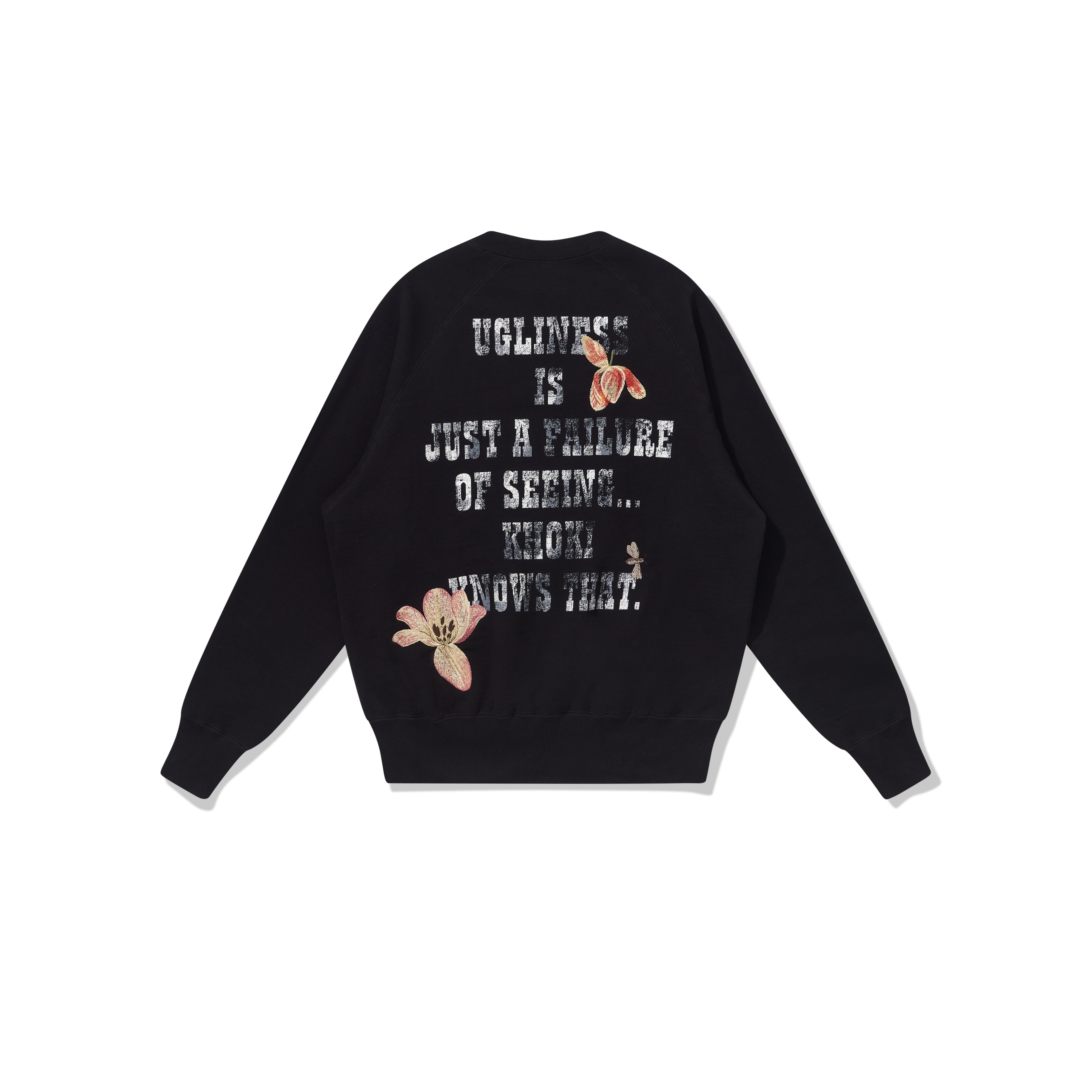 Japanese style pullover distressed embroidered floral print loose round neck long sleeve sweatshirt