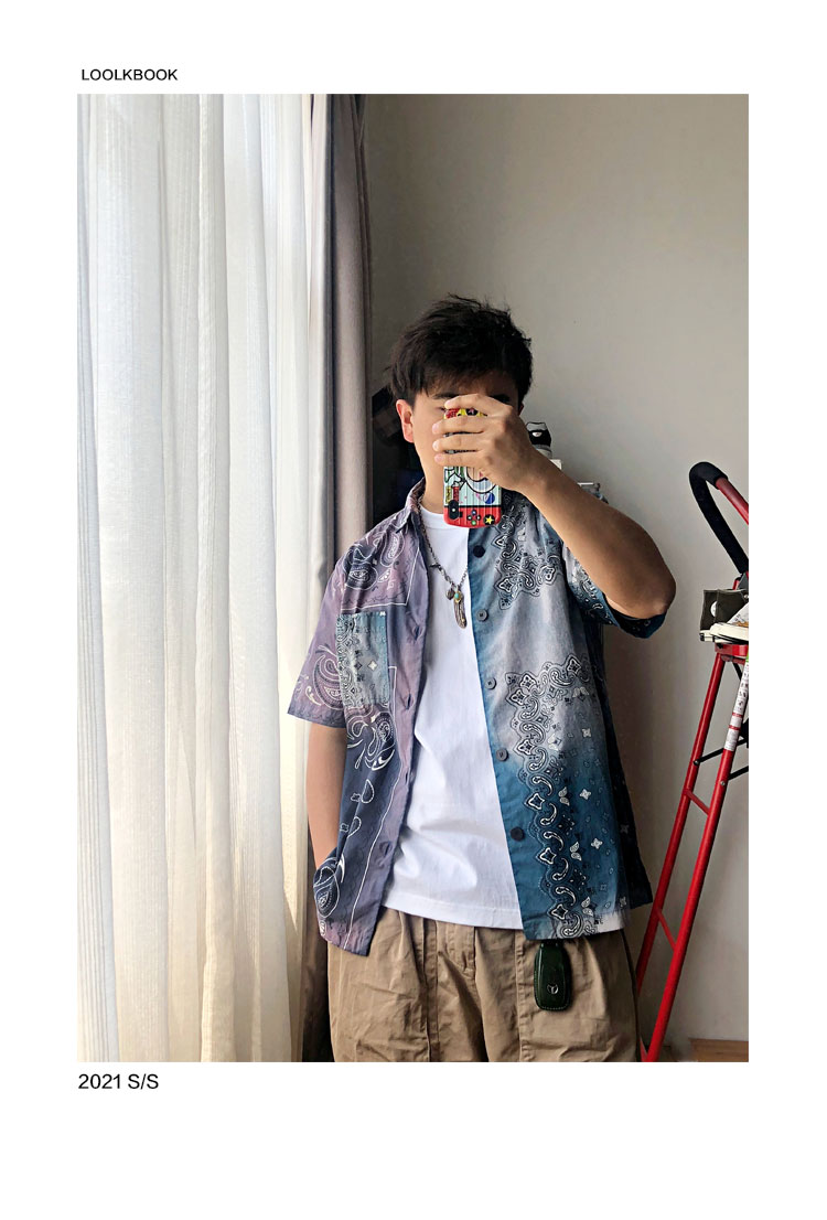 Japanese tie-dyed cashew flower short-sleeved shirt