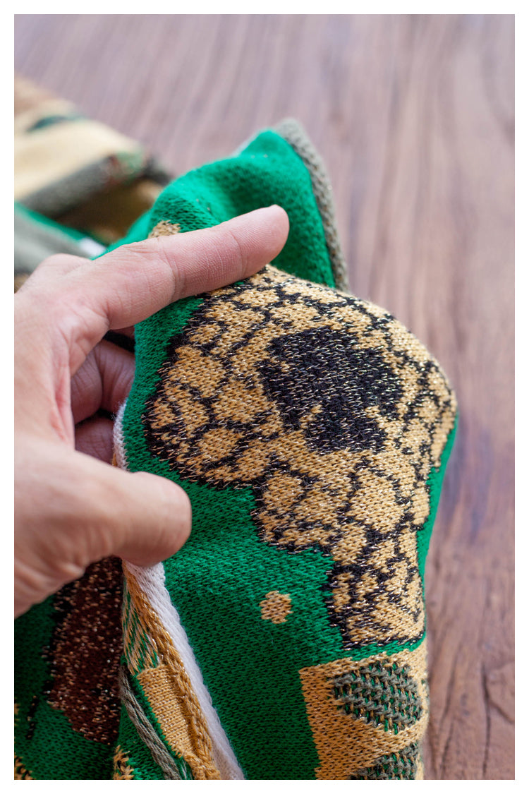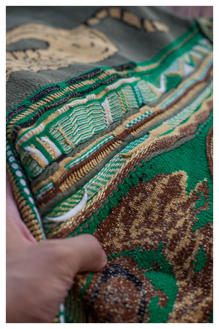 Perfect for creating cozy fall and winter outfits. Layer over collared shirts or turtlenecks for a preppy look, or pair with jeans and boots for casual weekend style. The vintage green color and unique lion pattern make this sweater a statement piece that stands out.