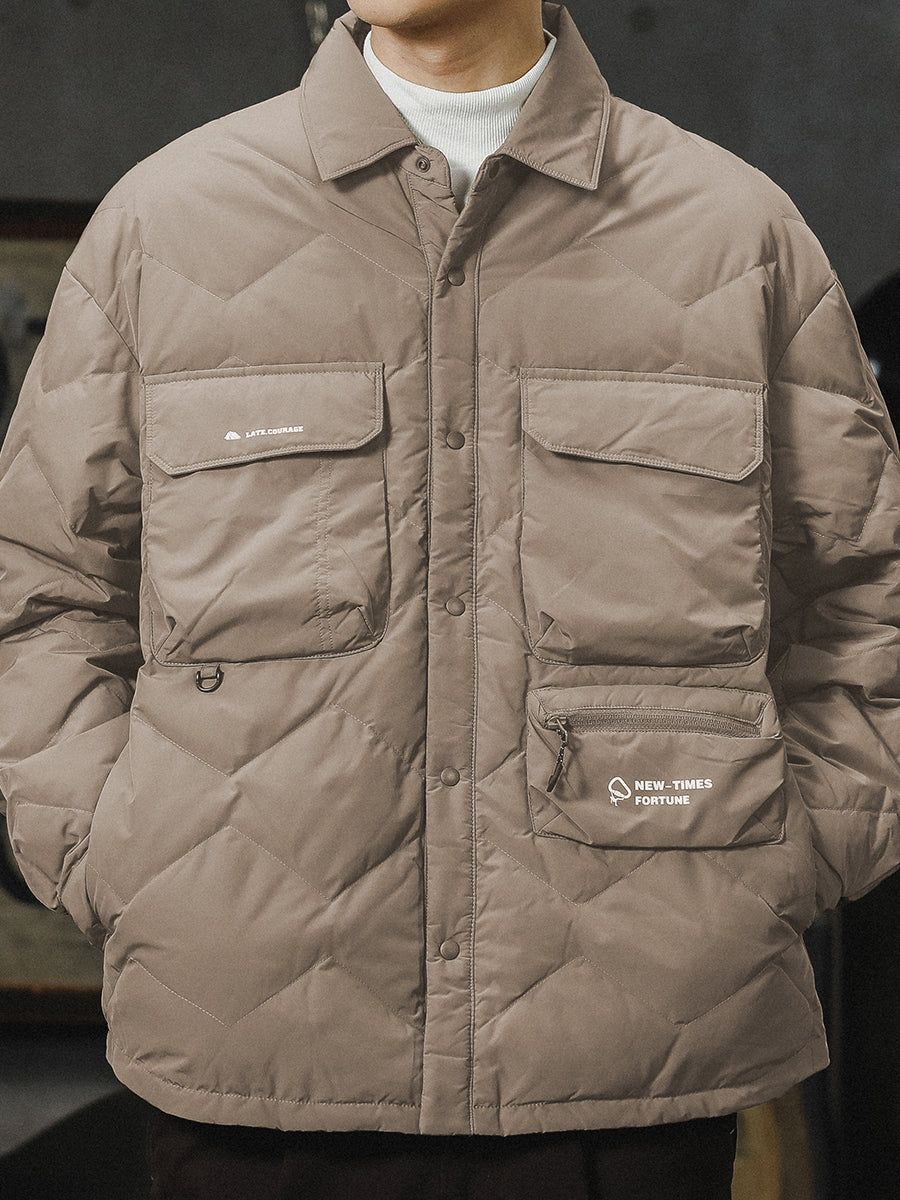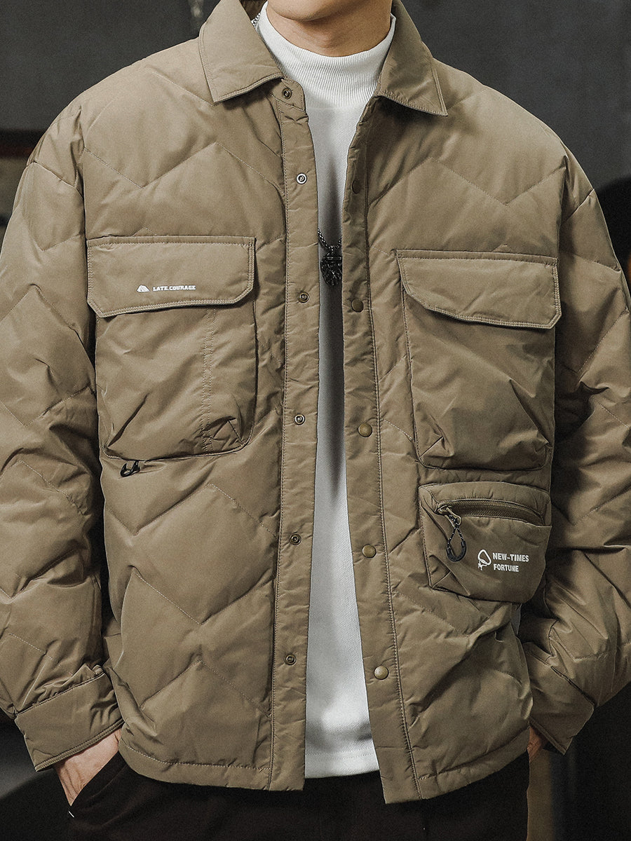 Men's Lightweight Shirt Down Jacket - Winter Youth American Workwear Trendy Warm Coat