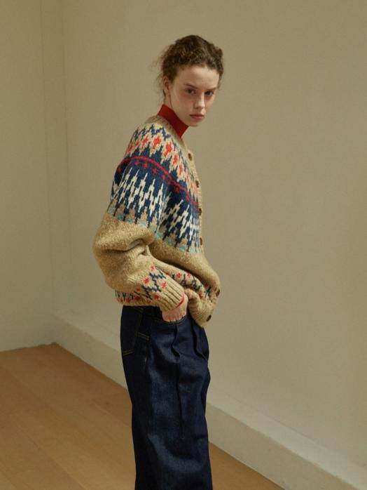 LINHOUSE French Retro Fair Isle Cardigan - Thick Wool Blend Sweater (Women)