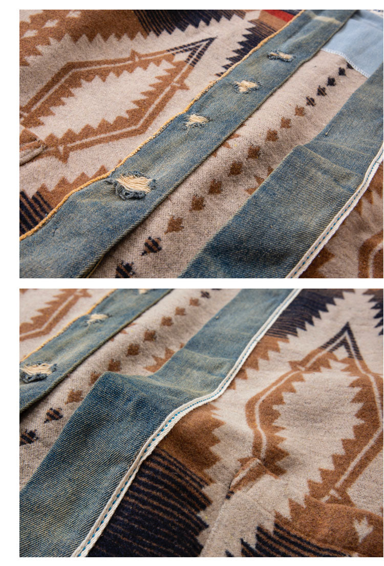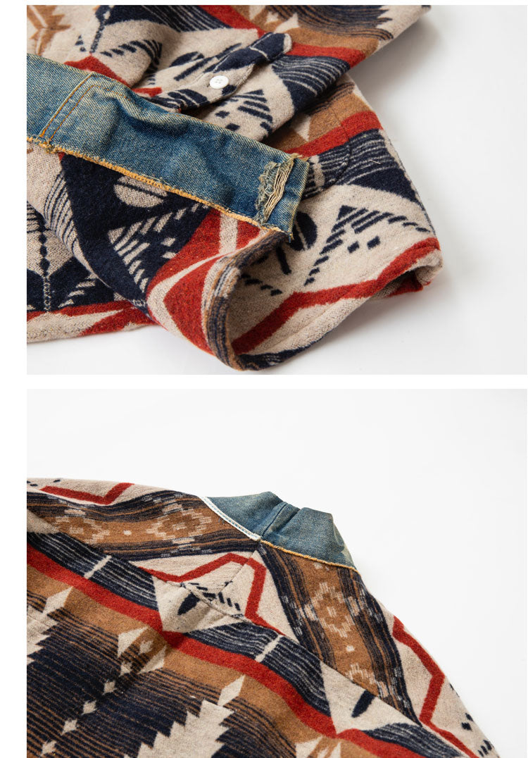 Men's Luckysartorius Japanese Retro Denim-Stitched Woolen Jacket - National Wind Robe Style Coat