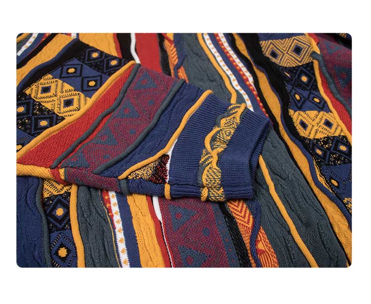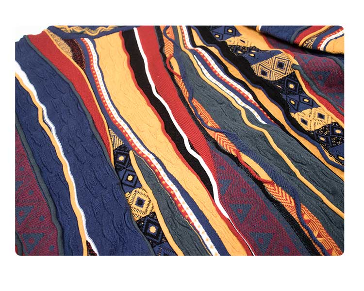 Medria American Style Retro Sweater - Guochao Hidden Color Bitter Melon Stripe Pullover