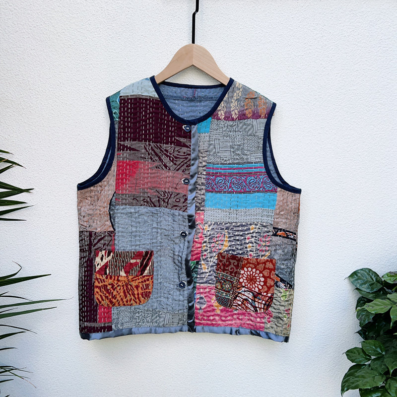 New Indian handmade thorn embroidery Indian silk vest with individual patchwork vest