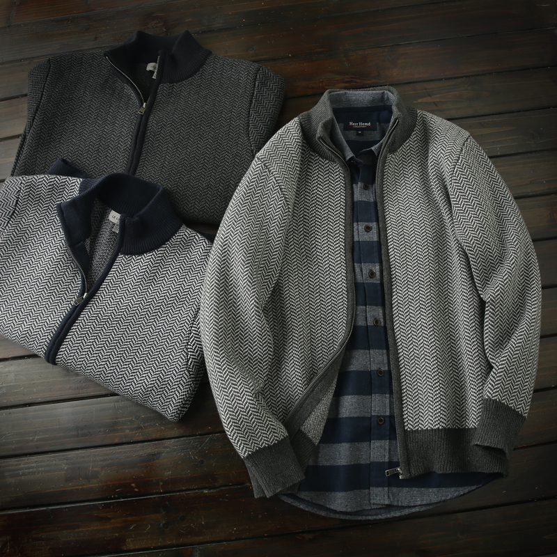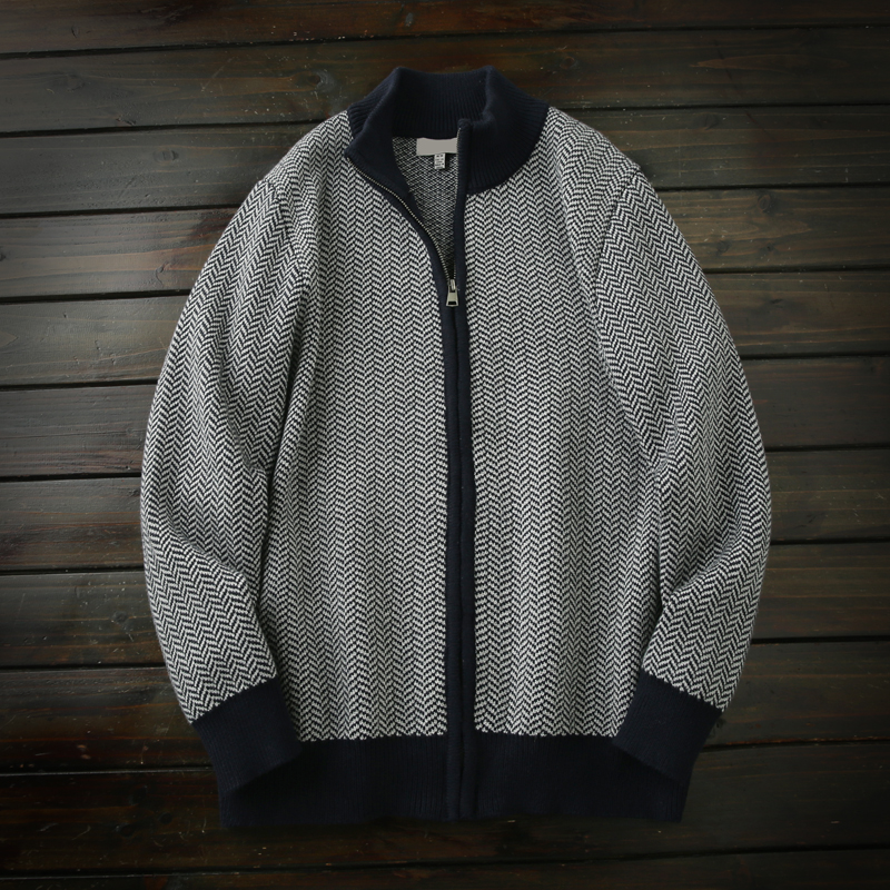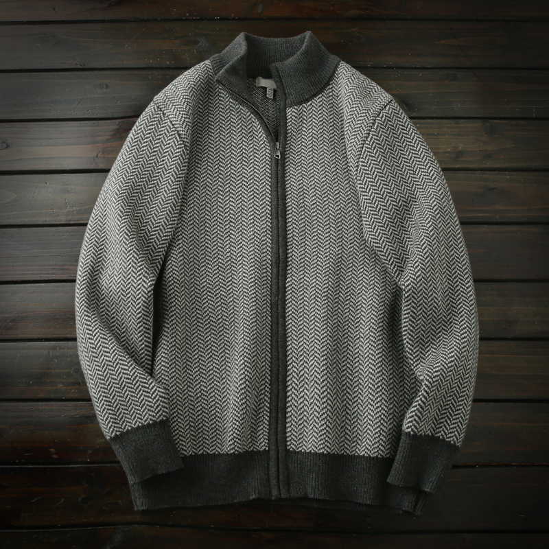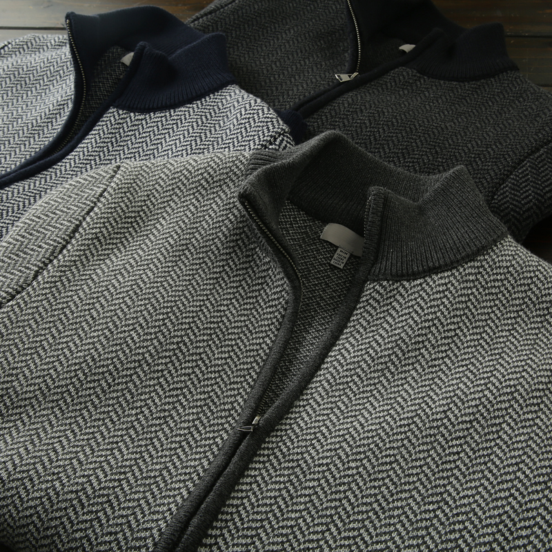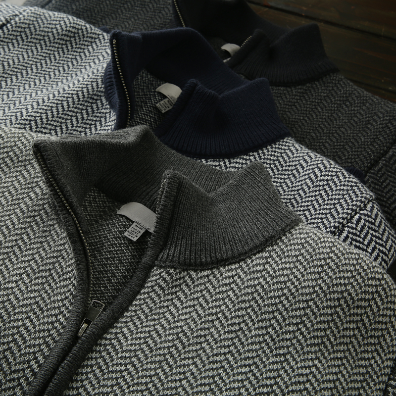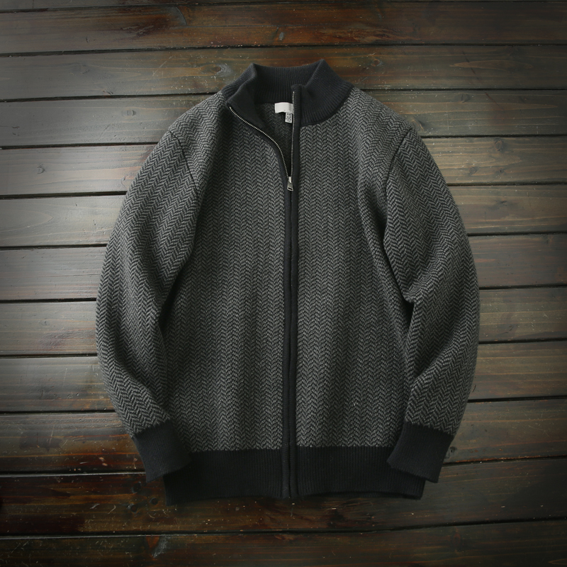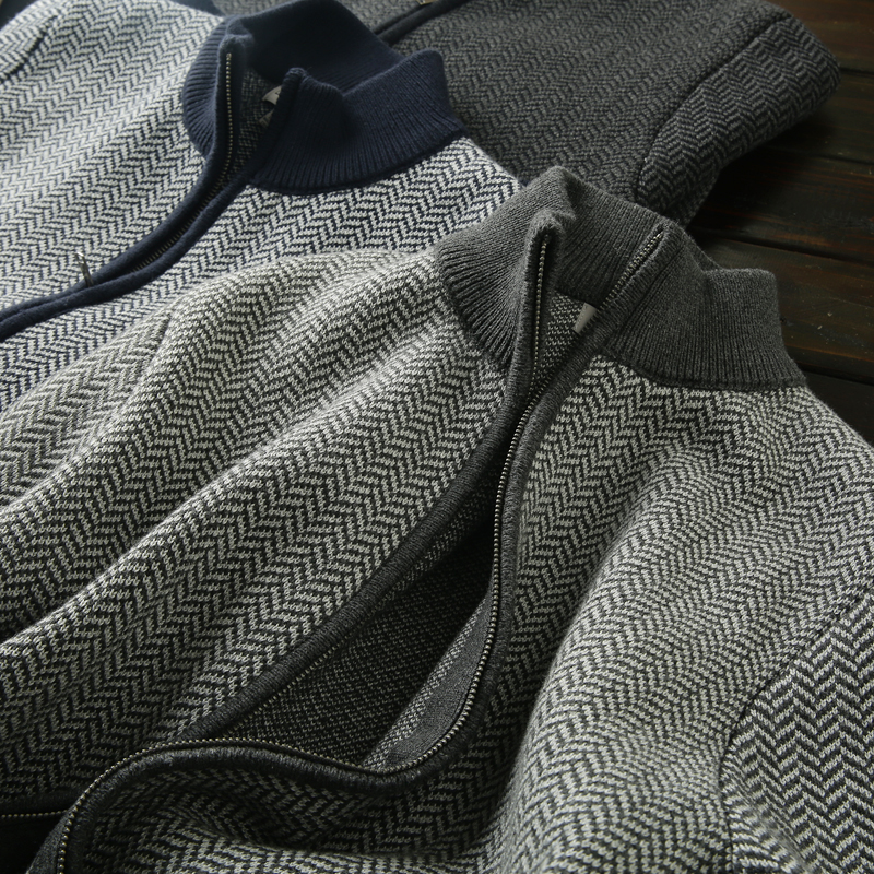Nordic orders foreign trade men's clothing factory tail goods autumn and winter cotton stand up collar thickened cardigan knitted sweater jacket men