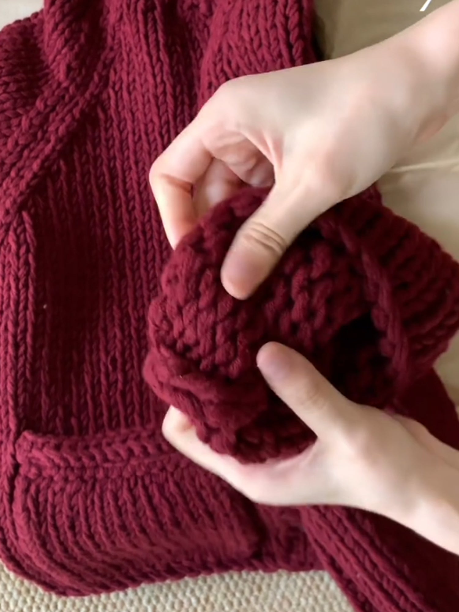 Berry Red Stand-Collar Wool Cardigan Coat – Thick-Needle Premium Knit (Women)