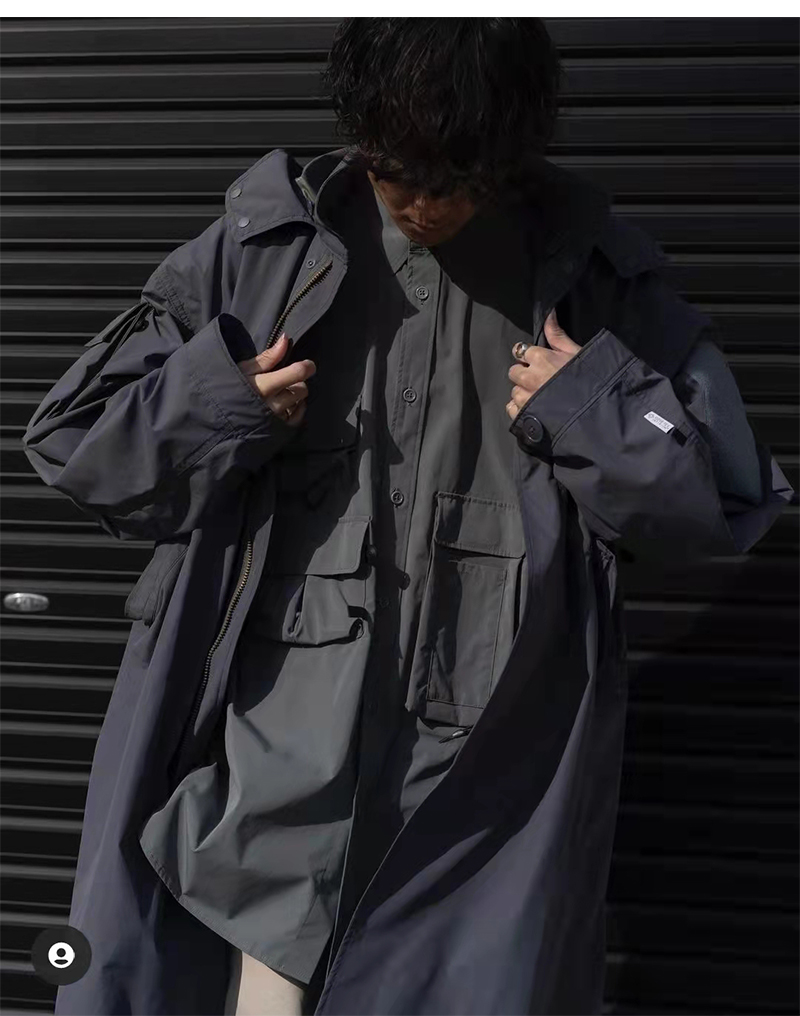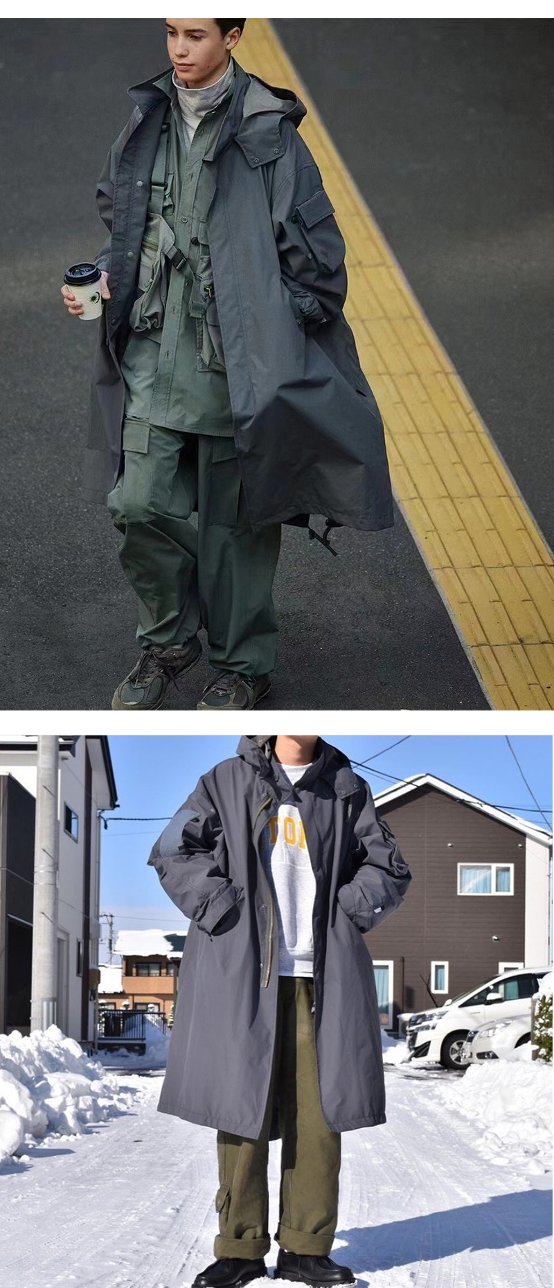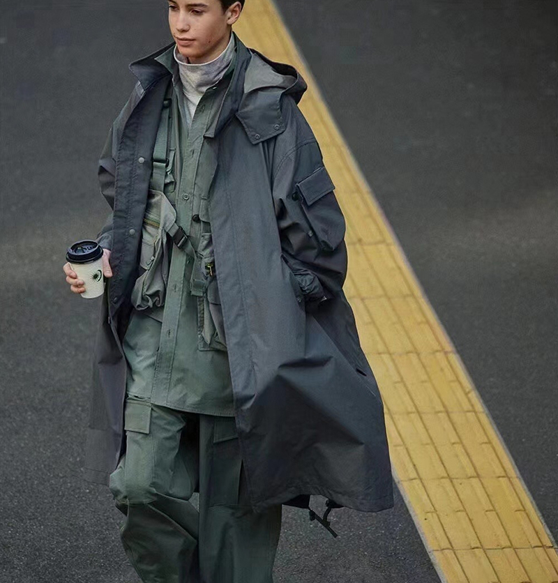 outdoor functional windproof hooded loose mid-length fishtail windbreaker