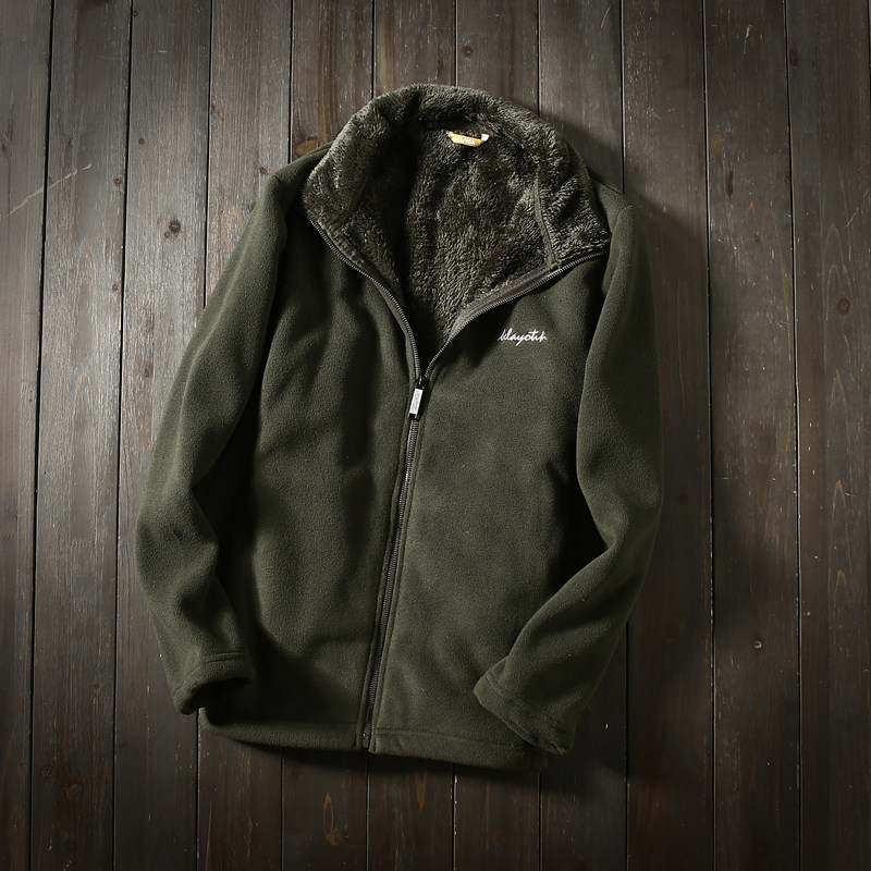 Plus size double-sided velvet! Foreign trade men's clothing factory tail goods casual thickened coral fleece cardigan sweater jacket winter