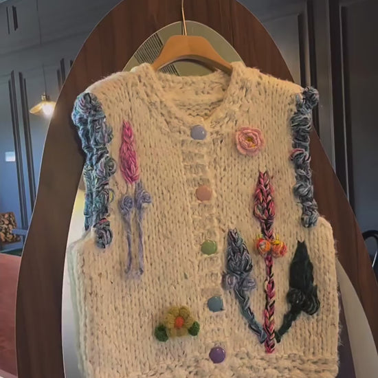 Women's 2025 Winter Plus Size Korean Cream Style Handmade Knitted Vest - Sleeveless Sweater Jacket