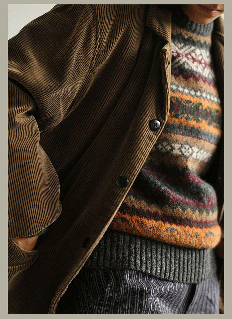 Vintage Floral Fair Isle Shetland Wool Sweater – Unisex Long Sleeve