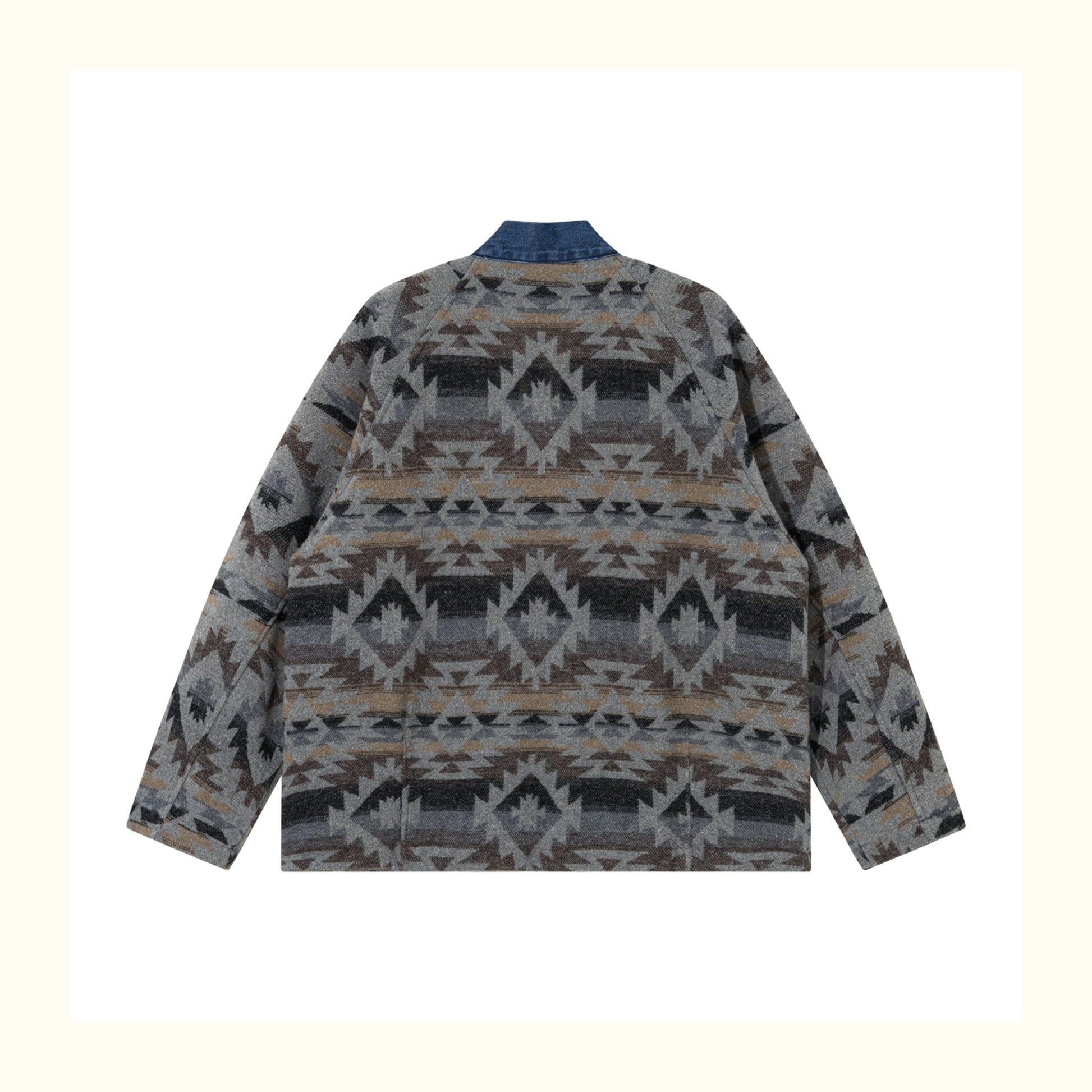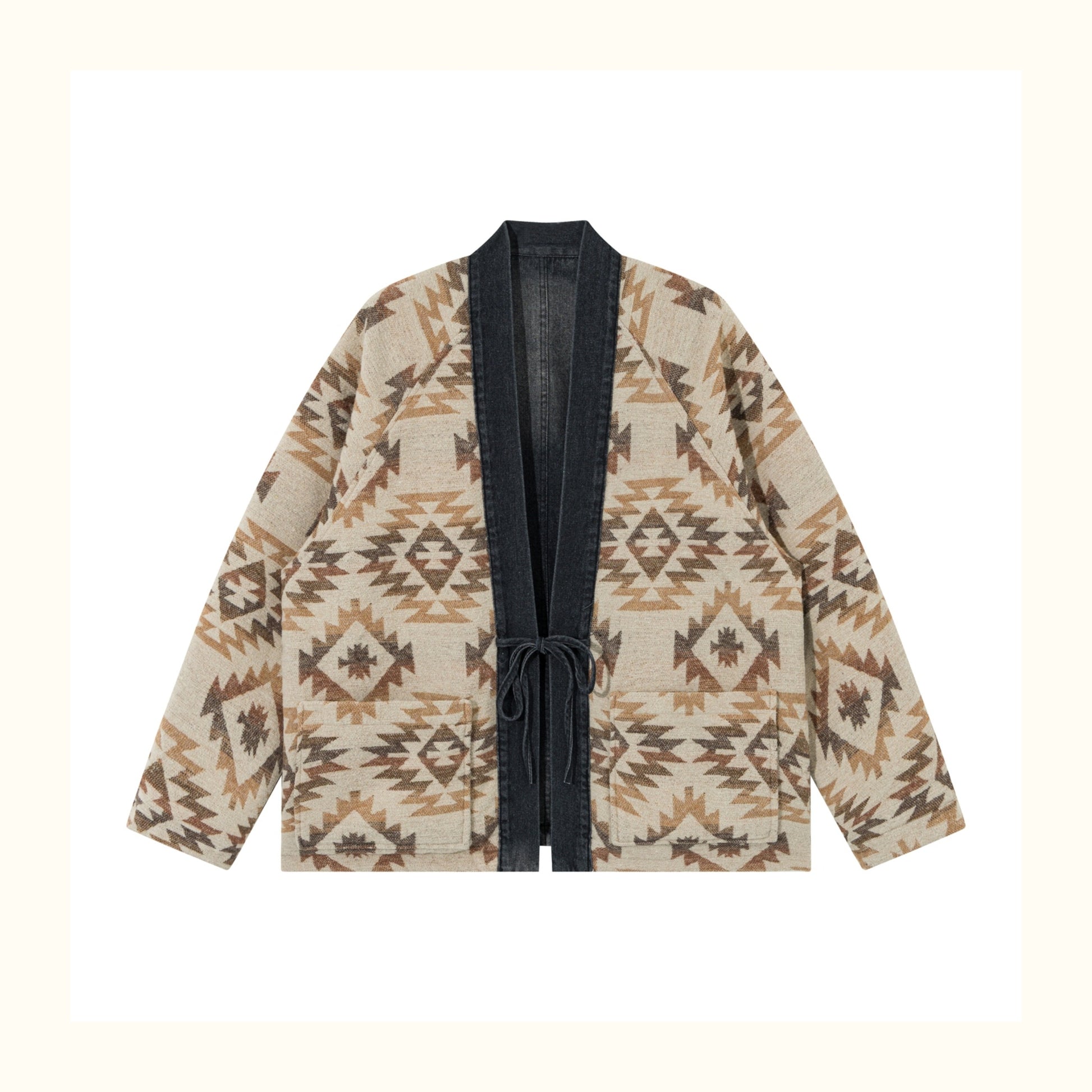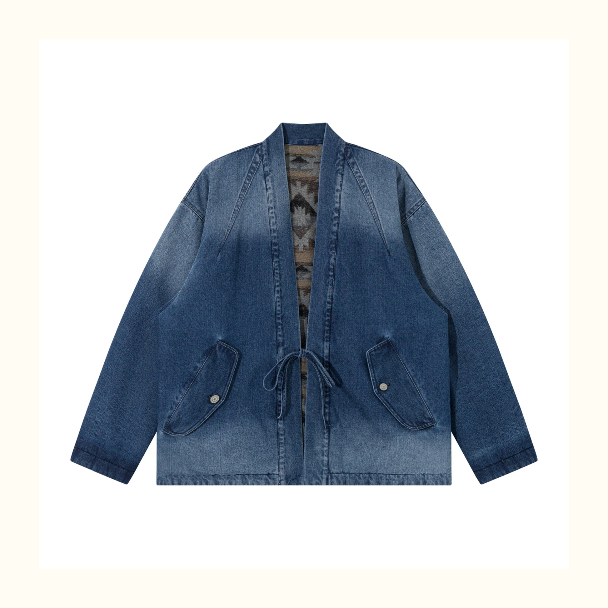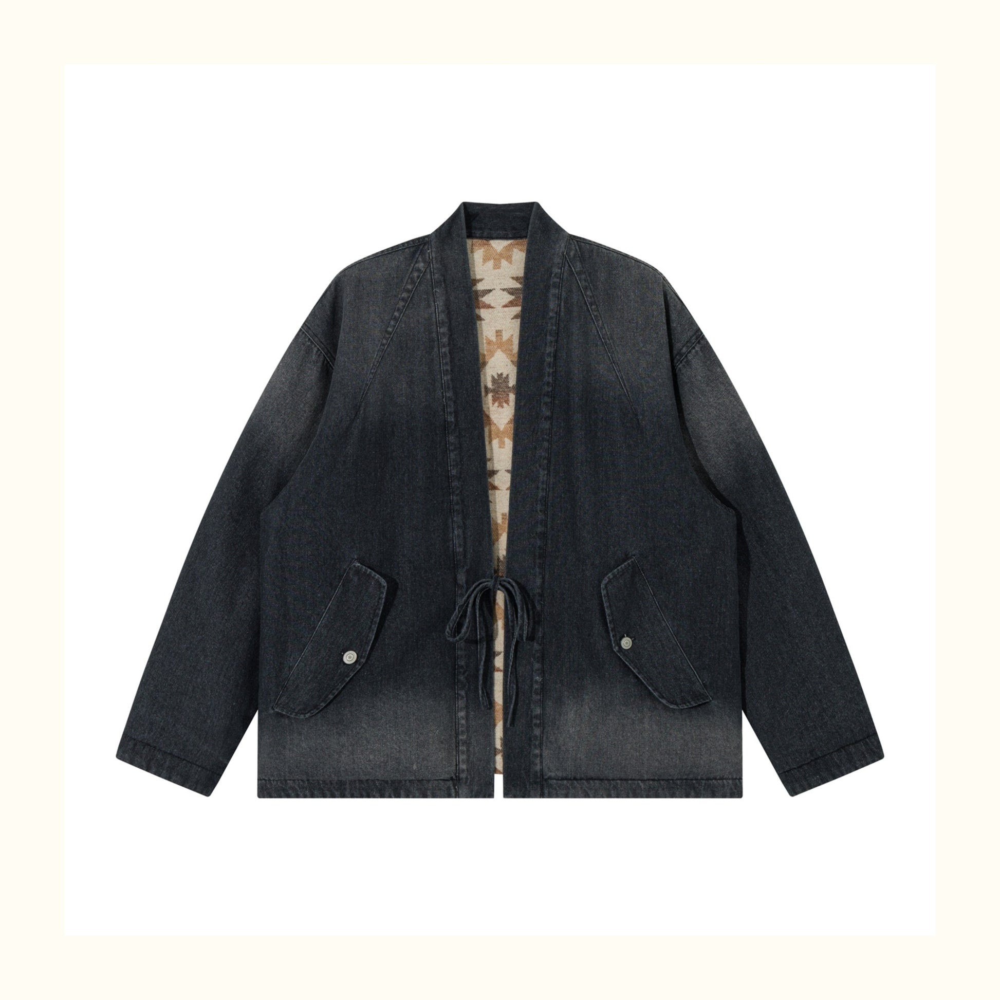Reversible Ethnic Jacquard “Dao Robe” Denim Cardigan – Oversized Lace-Up Coat for Autumn