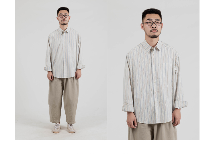 spring striped shirts, men's and women's long-sleeved Japanese retro design shirts, niche Hong Kong style casual trend