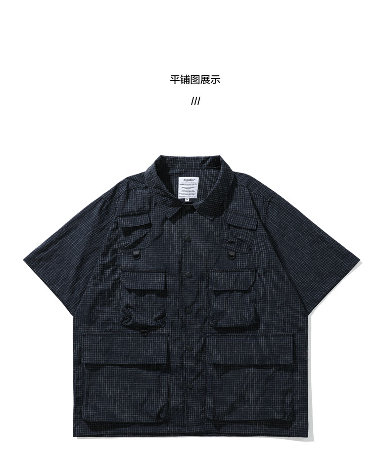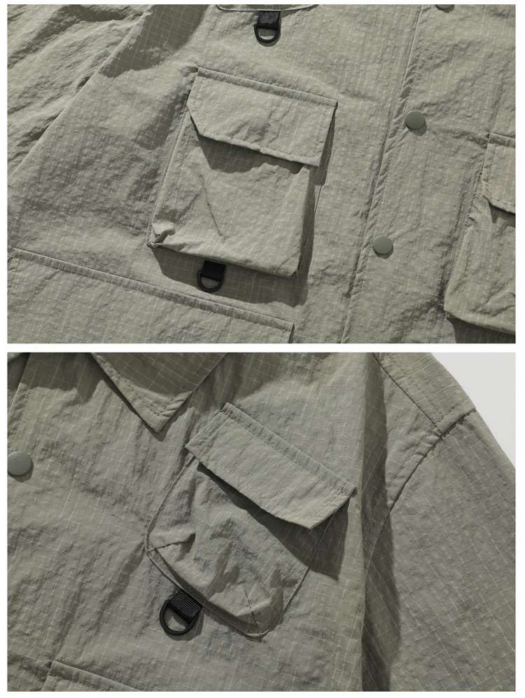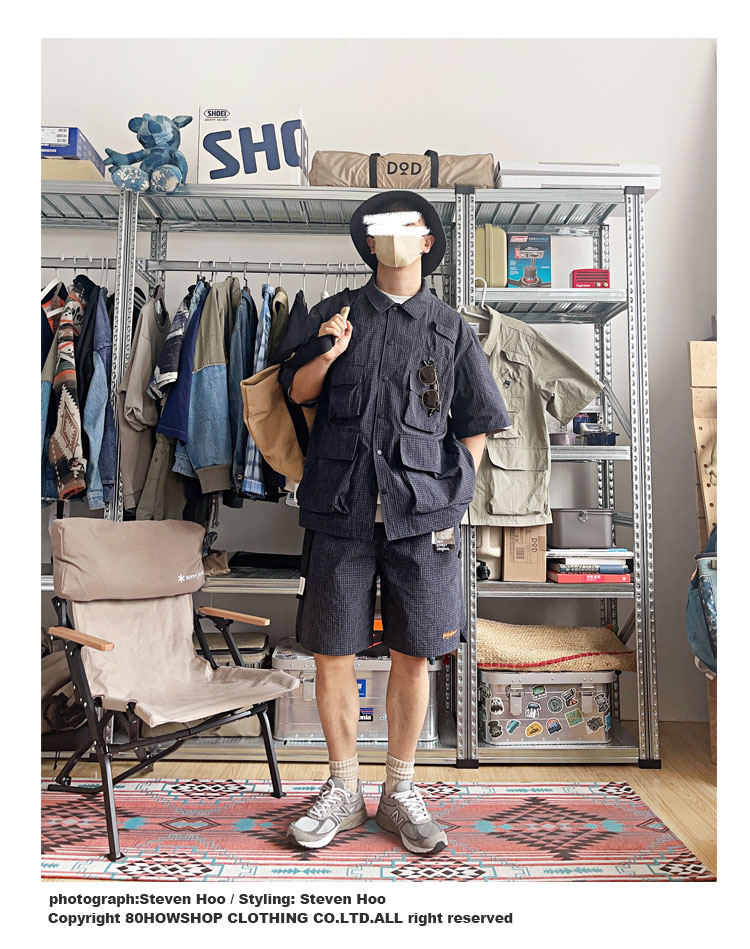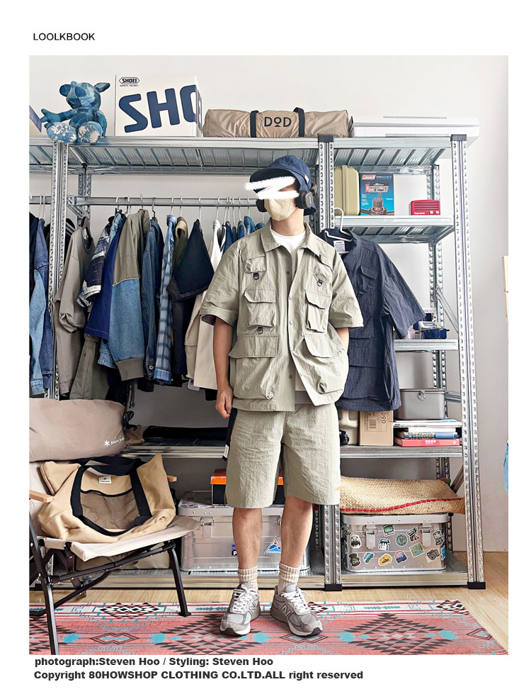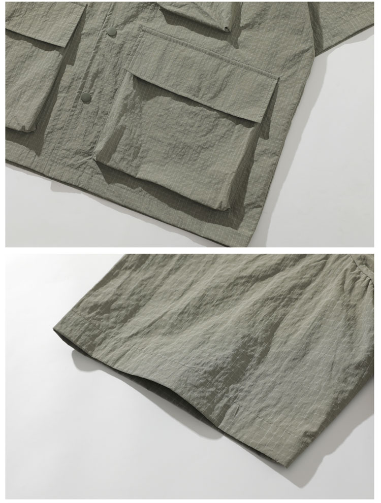 Summer outdoor functional wind three-proof fabric multi-pocket workwear wind multi-pocket loose shirt shorts suit men's wear