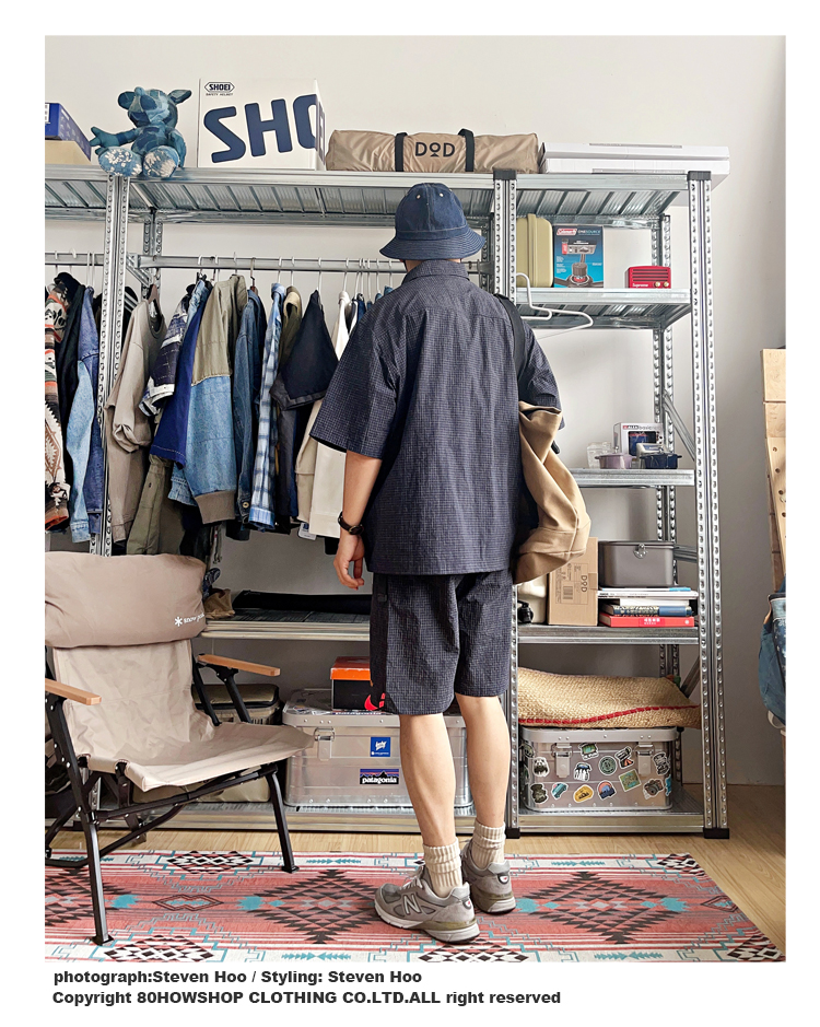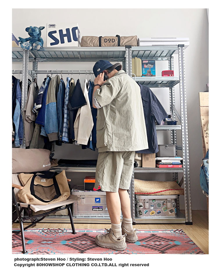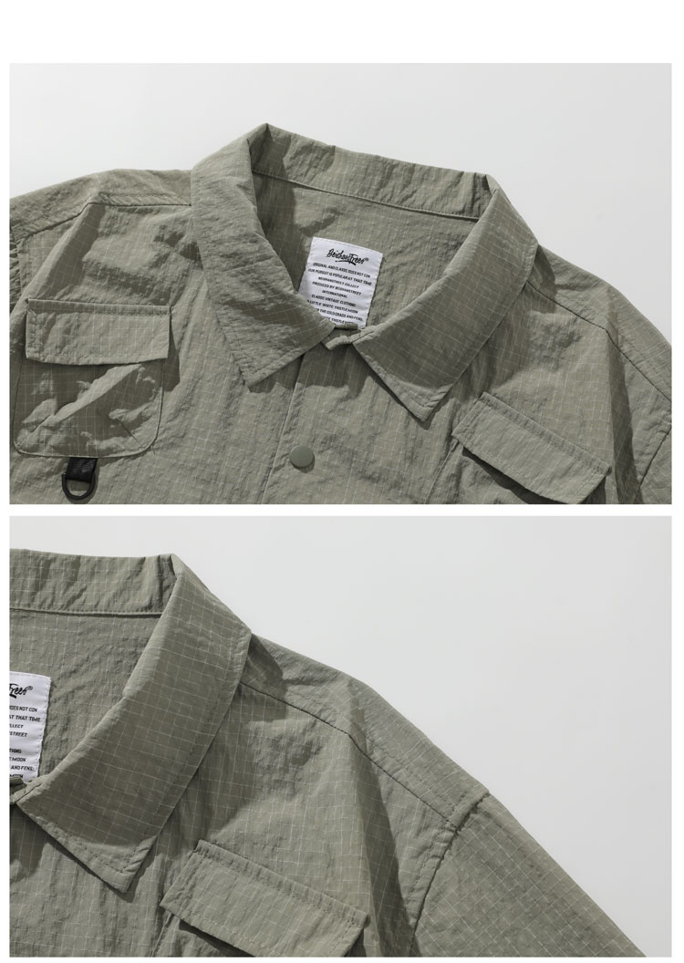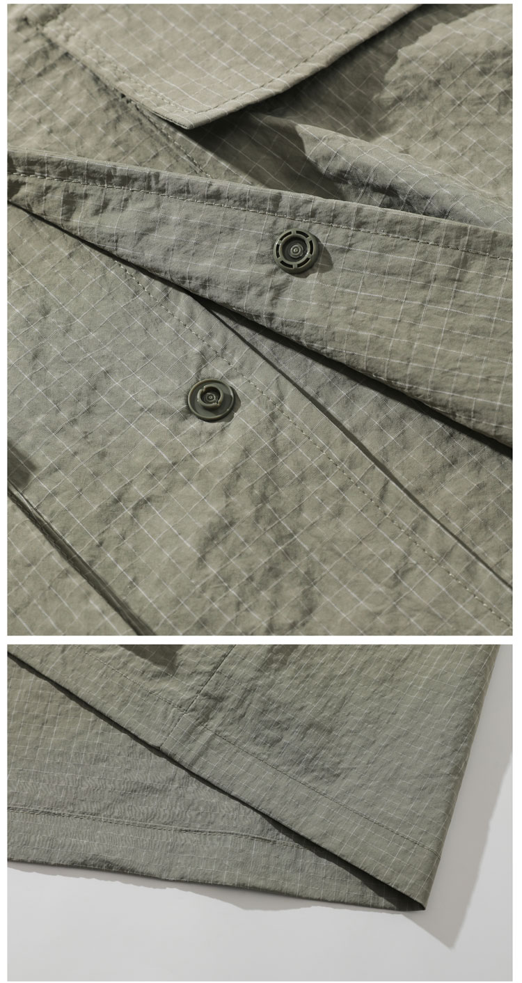 Summer outdoor functional wind three-proof fabric multi-pocket workwear wind multi-pocket loose shirt shorts suit men's wear