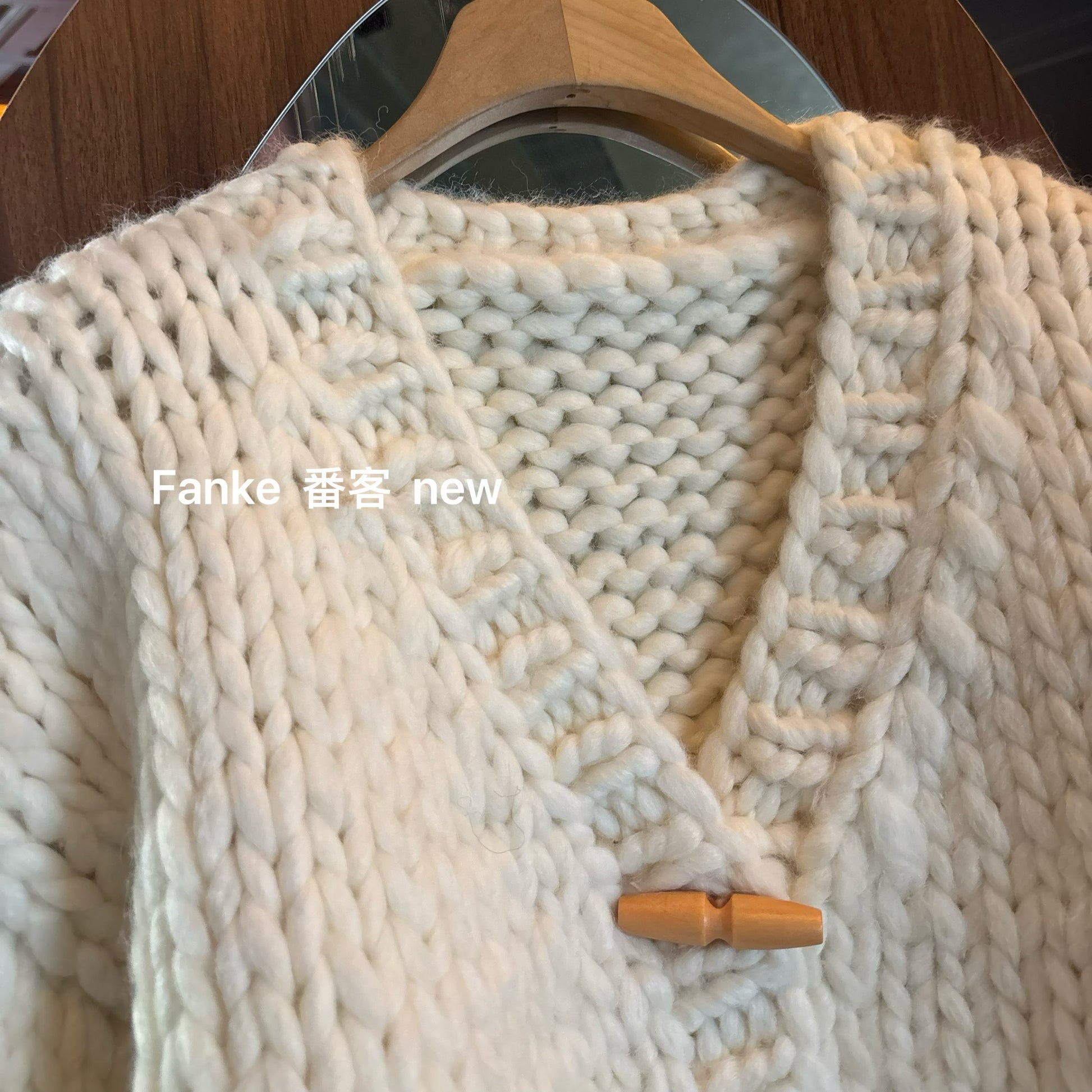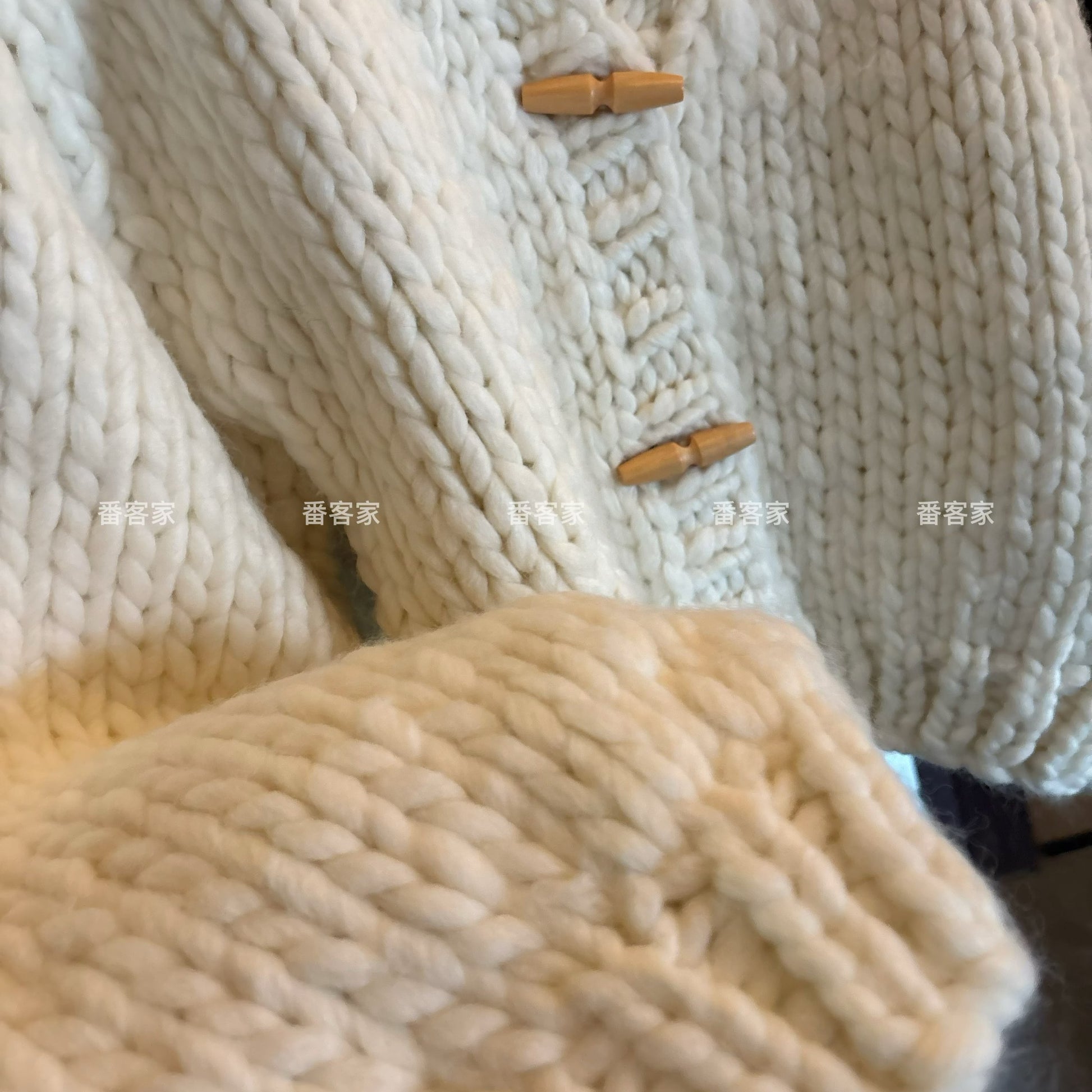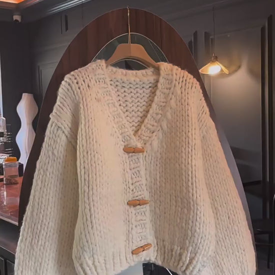 Women's Autumn Winter Thick Knitted Cardigan - Sweet Lazy Style V-Neck Buttoned Short Sweater Coat