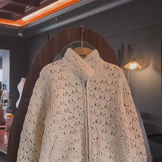 Women's Sweet Hollow Crochet Cardigan - Handmade Wool Blend Zipper Knitted Lazy Style Outerwear