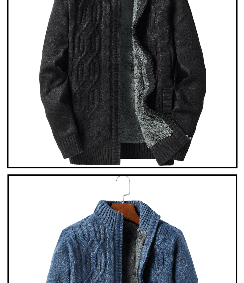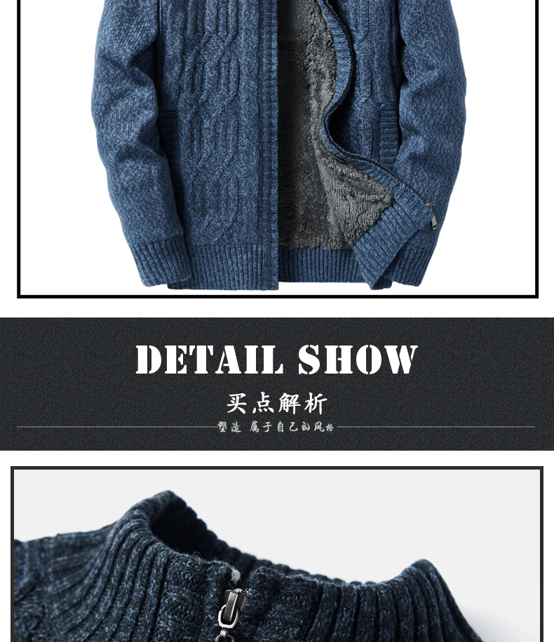 Temperament is stylish! Padded lamb fleece sweater men's winter stand-up collar jacquard knitted cardigan jacket