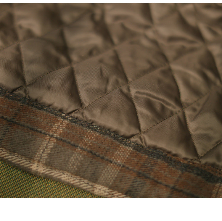 Men's Japanese Style Fake Two-Piece Hooded Plaid Cotton Jacket