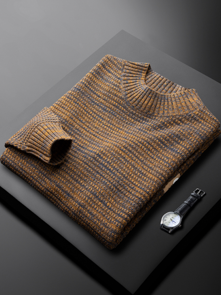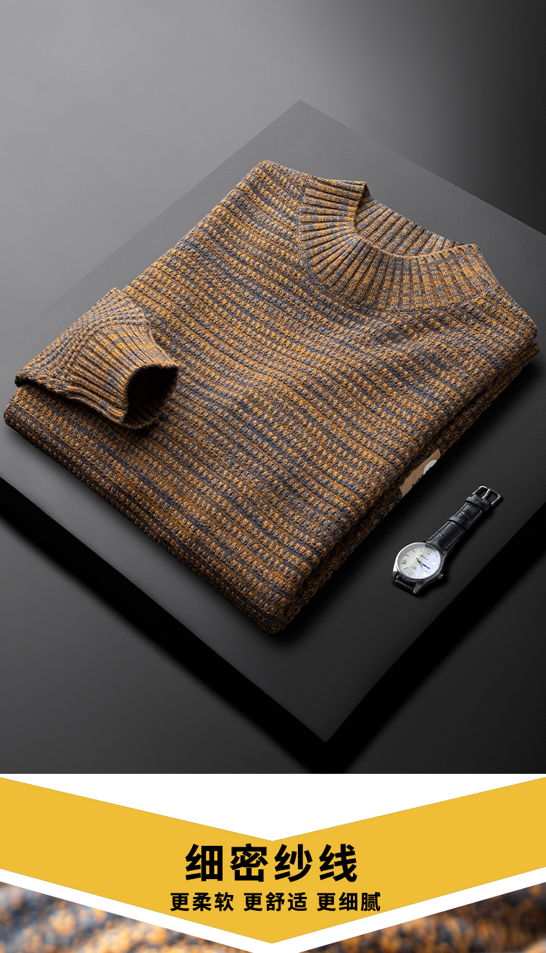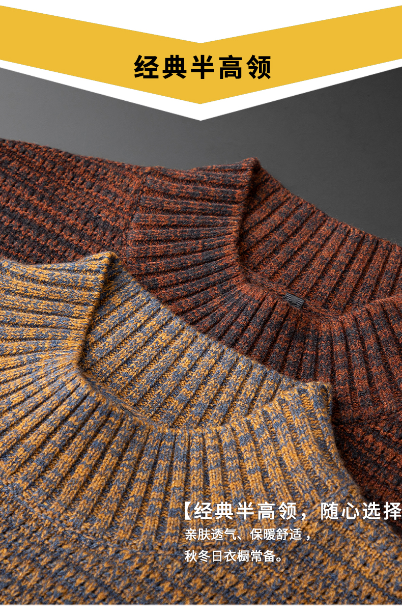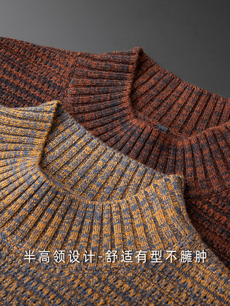 Two-color yarn half-high collar sweater slim fit thick warm mid-collar casual bottoming shirt does not pill