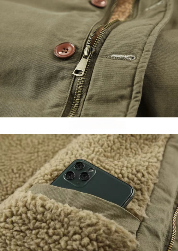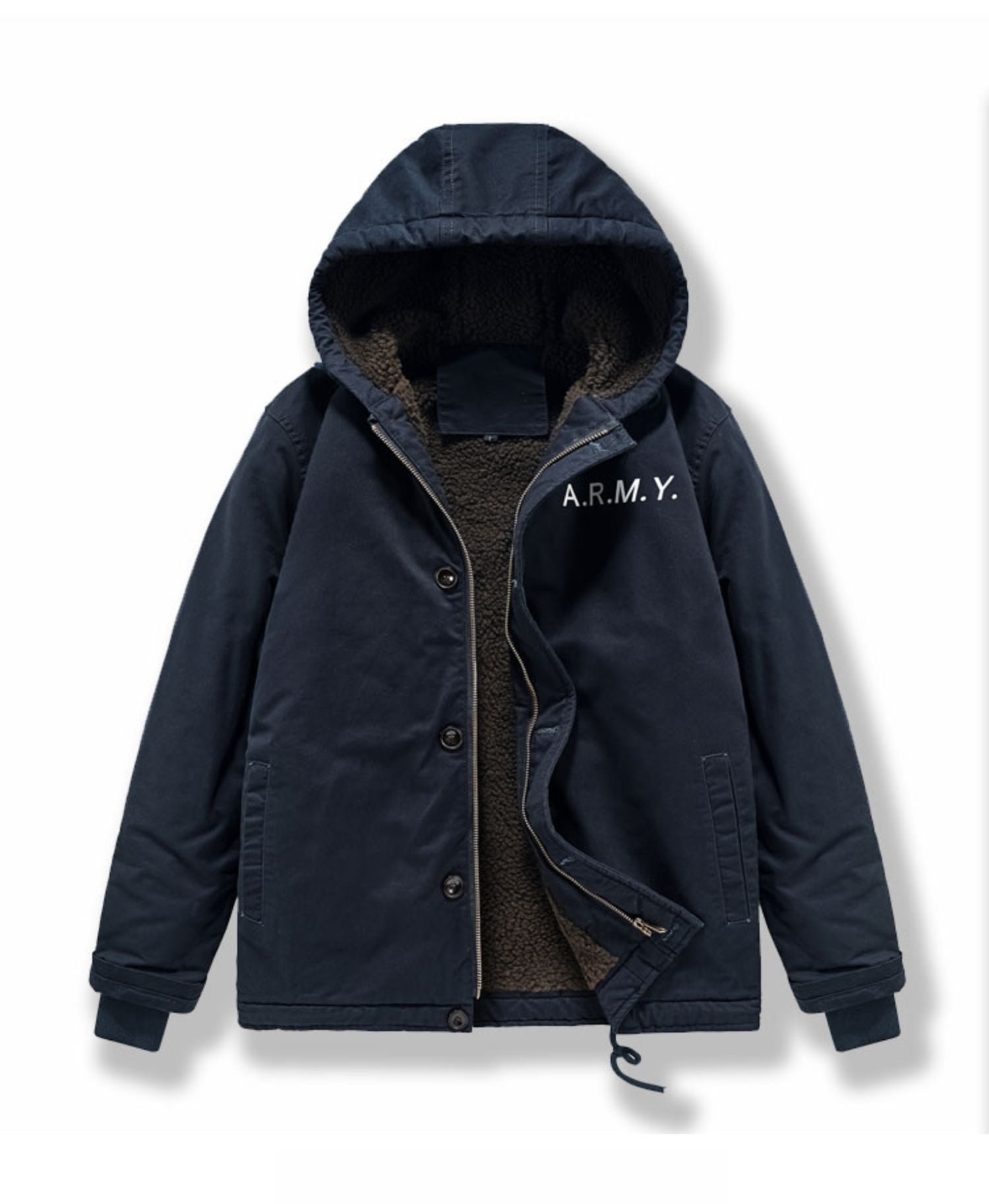 Men's Navy N1 Deck Jacket - American Workwear Lamb Wool Hooded Coat