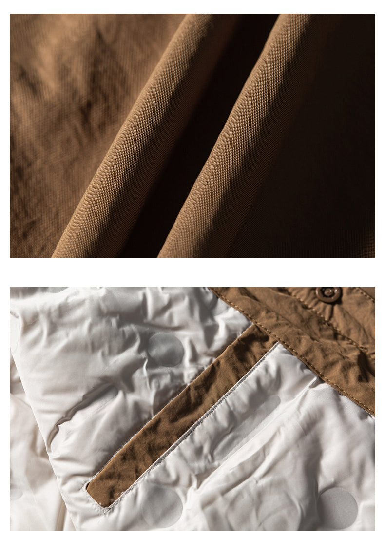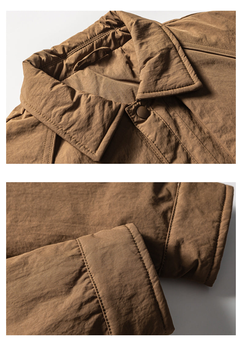 Men's Japanese Style Lightweight Down Jacket - 90% White Duck Down Loose Lapel Solid Color Workwear Coat