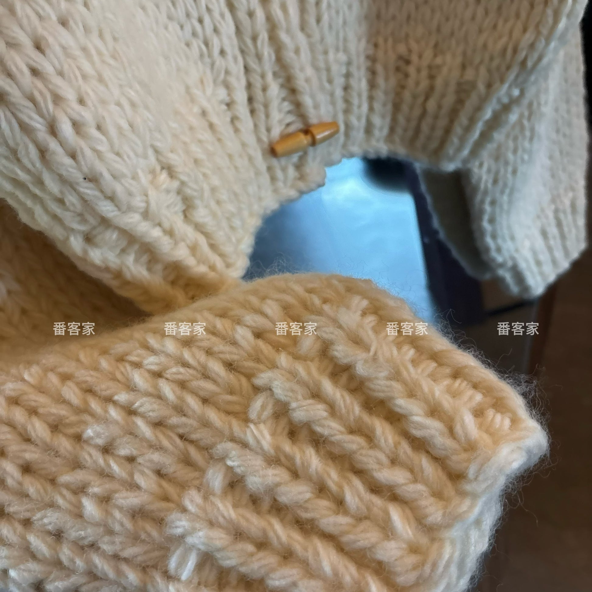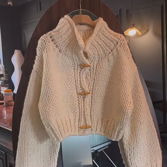 Women's High-End Wool Knitted Cardigan - Autumn Winter Lazy Style High Collar Horn Button Short Loose Top