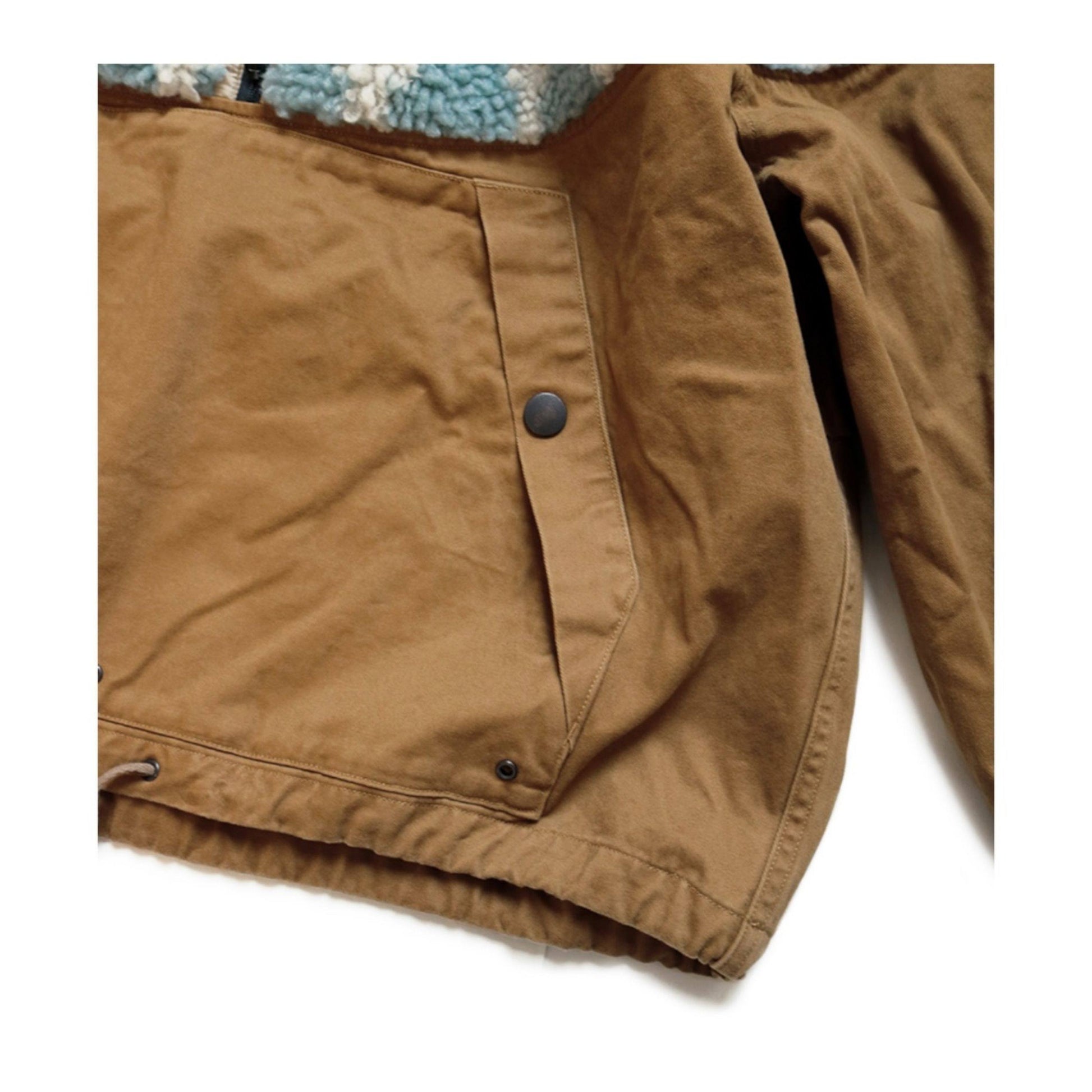 This jacket embodies Japanese workwear aesthetics through its patchwork construction and functional design. The lambswool patchwork technique creates a unique artisanal character, with each piece showcasing distinctive texture combinations. The half-high collar adds practical warmth while maintaining the clean lines characteristic of Japanese casual fashion. The 100% cotton construction ensures breathability and comfort for everyday wear.